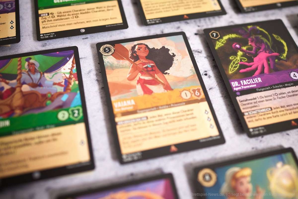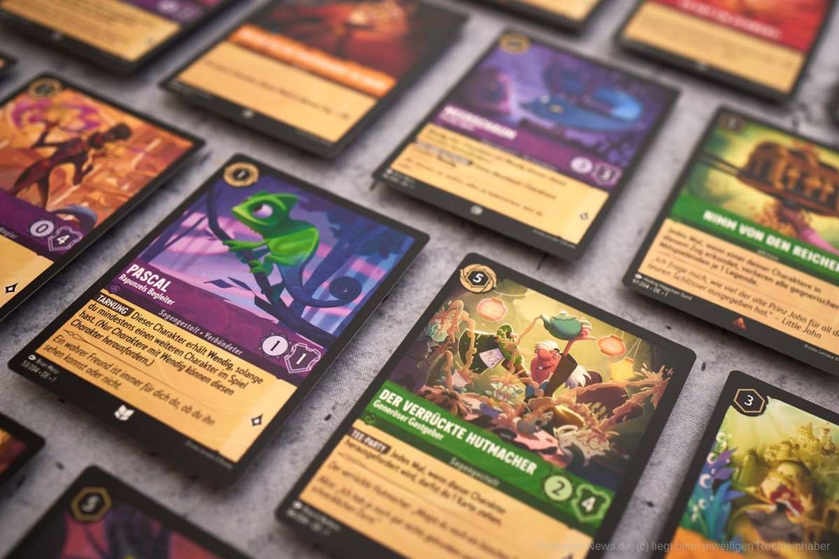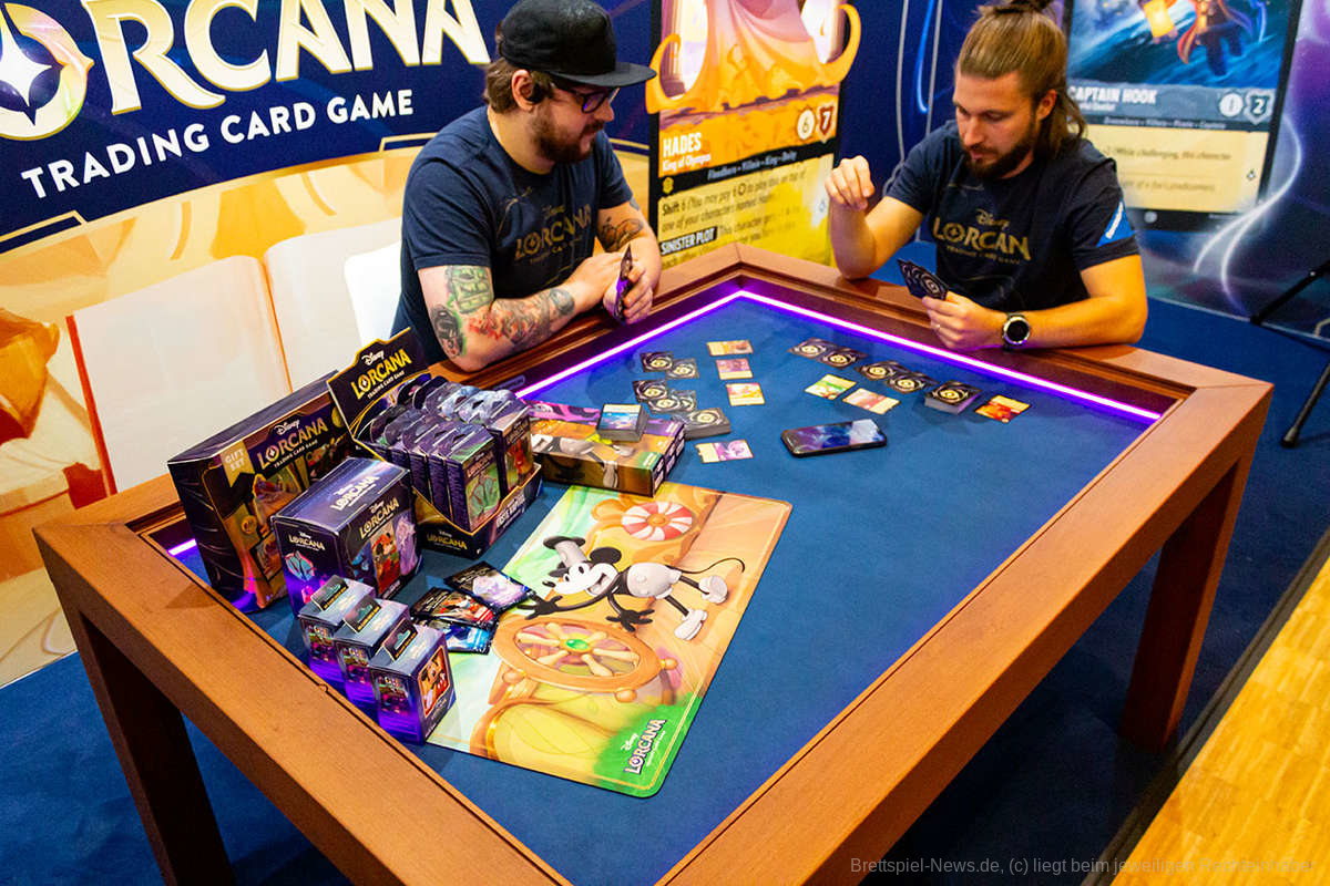 „Disney Lorcana“ ist ein Sammelkartenspiel, bei dem das Ziel darin besteht, als erste Person 20 "Lore" zu sammeln. Jede Person hat ein 60-Karten-Deck, das aus verschiedenen Elementen wie Disney-Figuren, Gegenständen und Liedern bestehen kann. Alle können ihr eigenes Deck zusammenstellen oder vorgefertigte Starterdecks verwenden. Das Spiel startet mit dem Ziehen von sieben Karten und dann wird in jeder Runde eine Karte nachgezogen. Eine besondere Spielmechanik ist die Umwandlung von Karten in "Tinte", die zum Ausspielen weiterer Karten benötigt wird. Die Spielenden können Charakterkarten ausspielen, um sie auf eine Quest zu schicken oder andere Charaktere herauszufordern. Allerdings müssen diese Charaktere eine Runde "trocknen", bevor sie aktiv werden können.