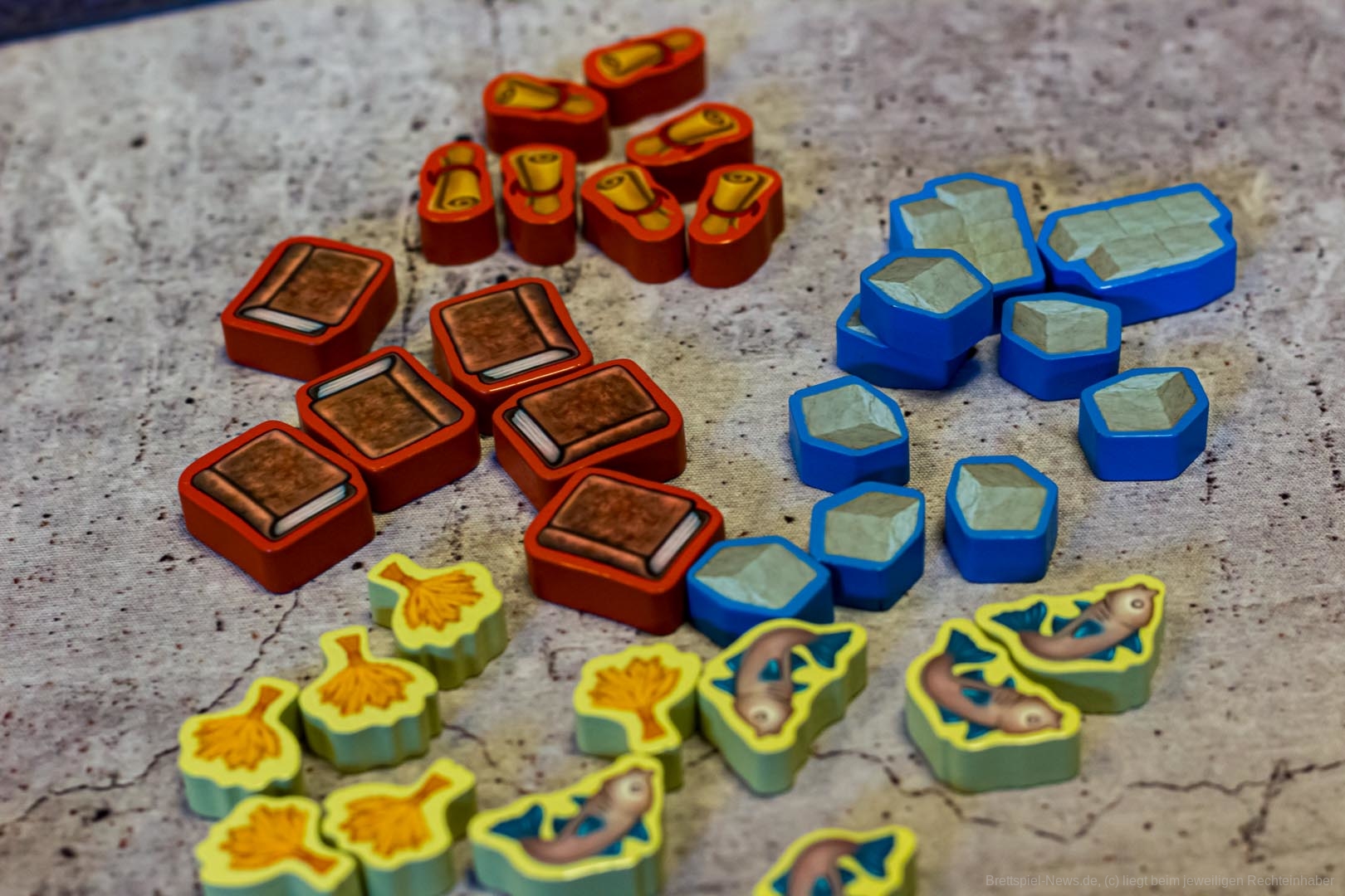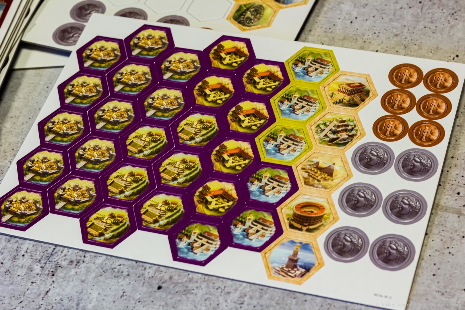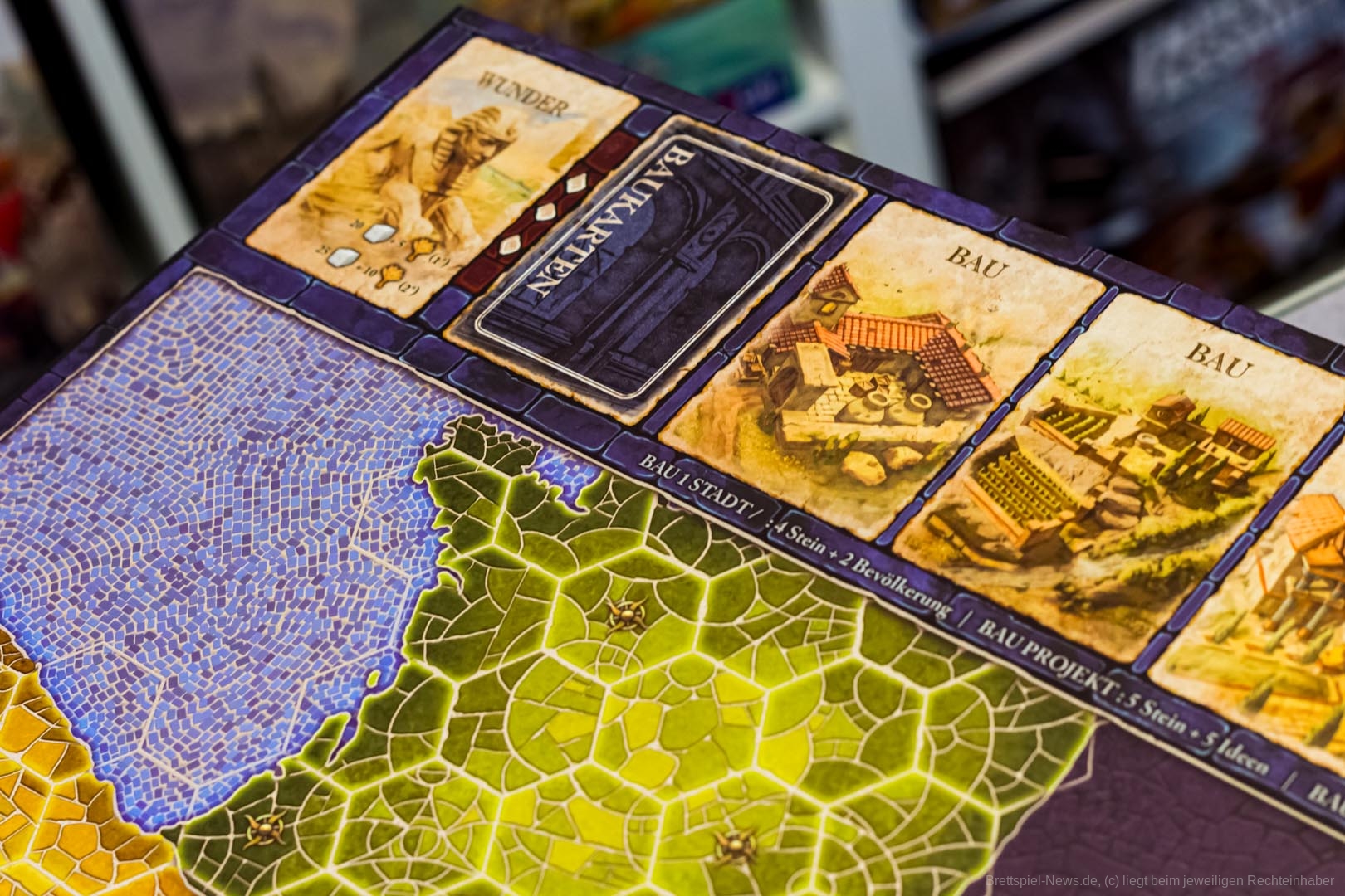 Mosaic ist ein Aktionsauswahlspiel. Wenn Sie am Zug sind, führen Sie eine von acht Aktionen aus und erwerben Säulen der Zivilisation.