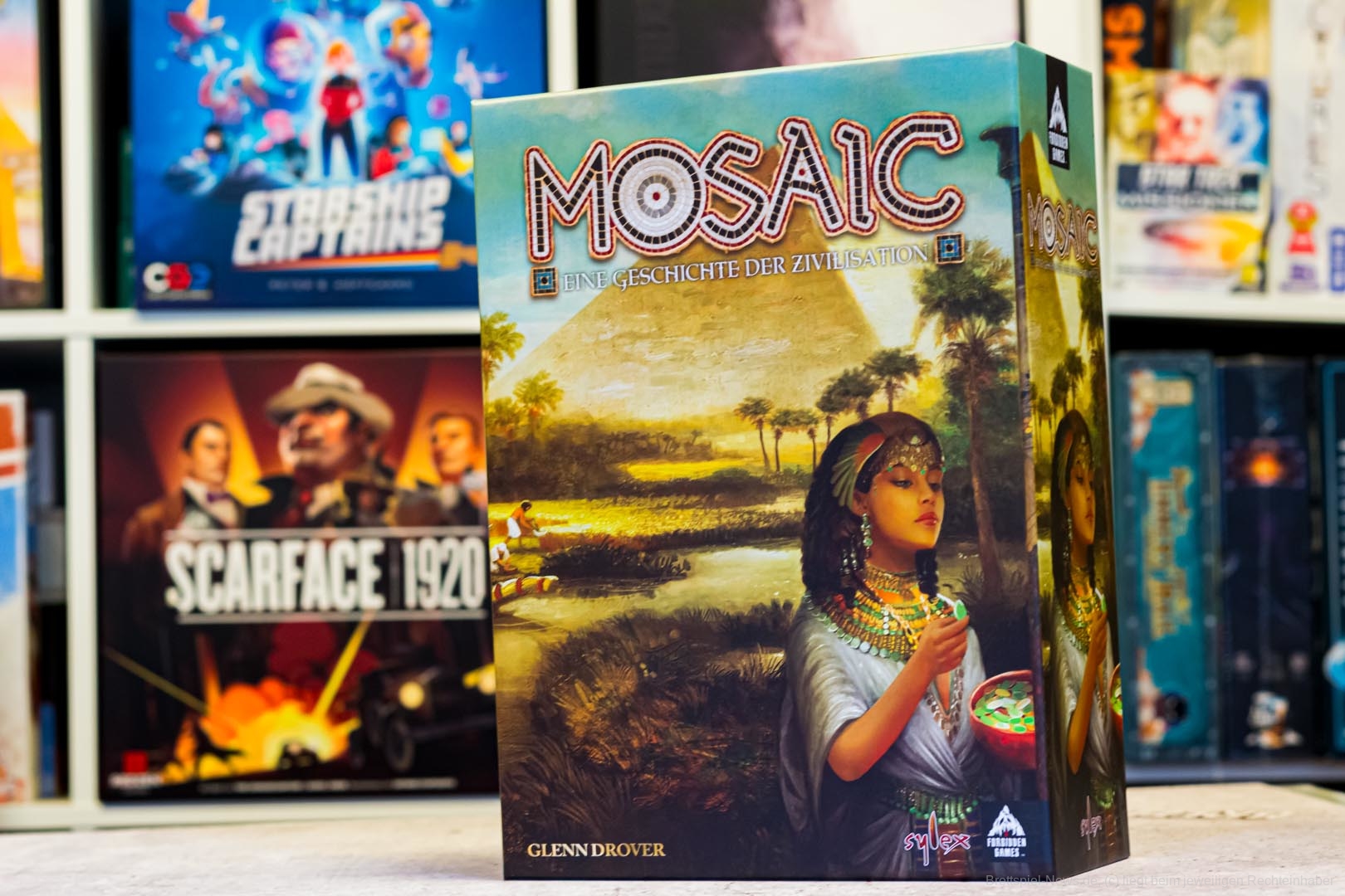 „Mosaic: A Story of Civilization“ ist ein Civilization-Building-Spiel von Glenn Drover, dem Entwickler von u.a. "Age of Empires III: The Age of Discovery", "Railways of the World", "Sid Meier's Civilization: The Boardgame", und "Raccoon Tycoon". Wer also schon früher gerne Experten- und Kennerspiele gespielt haben sollte, der wird sicherlich mindestens einen der Titel auf dem Tisch gehabt haben.