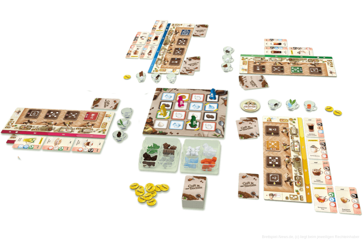 Mit eurer Baristafigur sammelt ihr Zutaten für schmackhafte Kaffee- oder Teegetränke und schließt Bestellungen ab, um gute Bewertungen zu erhalten. Die Partie endet, wenn der Bestellungskartenstapel leer ist oder jemand fünf oder mehr Strafkarten gesammelt hat. Ob Caffè Latte, Espresso Doppio oder Grüner Eistee – Wer am Ende die höchste Beliebtheit als Barista genießt, gewinnt. Schließt eure Bestellungen rechtzeitig ab und beweist euch als Barista der Extraklasse!