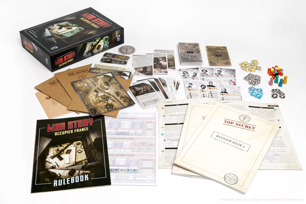 Narrative Spiele, in denen eine Geschicht mithilfe eines Abenteuerbuchs erzählt wird, gibt es mittlerweile eine ganze Menge. Auch thrillermäßige Spannung kam dabei in vergangenen Spielen wie „Detective“ und „Vienna Connection“ immer wieder vor. Osprey Games möchte diesem Konzept nun aber offenbar noch eins oben drauf setzen. In ihrem neuen kooperativen Abenteuerspiel „War Story: Occupied France“ für 1-6 Personen gibt es zusätzlich zu vielen Entscheidungen und einer spannend erzählten Geschichte nun auch noch ein Kampfelement, das von Spielenden ausgewählte und ausgerüstete Spione auf kleinen taktischen Karten ausführen.