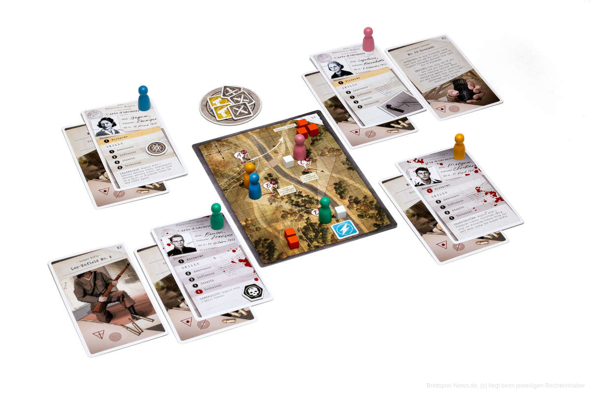Die Besonderheit an „War Story: Occupied France“ ist aber in jedem Fall die taktische Karte, die bei Konfrontationen ins Spiel kommt. Dann müssen die eigenen Spione geschickt platziert werden. So gab es auf einer Karte zwei mögliche Felder, auf denen Scharfschützen platziert werden konnten, oder extra Felder für Charaktere mit besonderer Eignung für den Nahkampf. Diese Kämpfe werden dann ebenfalls durch Paragraphen im Abenteuerbuch abgehandelt, die dann die Anzahl, Ausrüstung und Fähigkeiten der eingesetzten Spione abfragen. Dabei kam definitiv Spannung und sogar ein Gefühl einer Actionszene auf. Und auch das Setting war spannend und fühlt sich unverbraucht und originell an. Fans von narrativen Spion- oder Detectivspielen sind hier also wohl an der richtigen Adresse.
