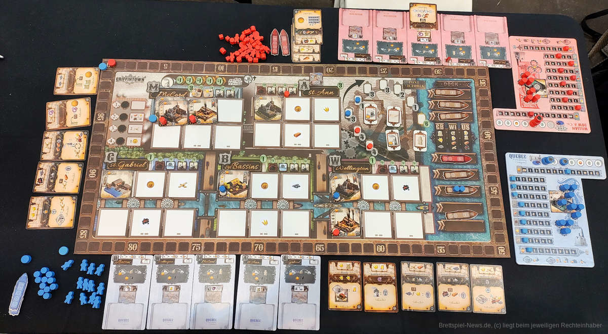 Wer „The Smoky Valley“ kennt oder gespielt hat, weiß um die unzähligen miteinander verschachtelten Mechanismen, Punkteleisten und Effekte, die das Spiel zu bieten hat. Der eigene Spielbereich will durch Kanal-Erweiterungen verbessert, einzelne Diskrikte der Stadt aufgebaut, Waren exportiert und mehrere Bürgermeister-Wahlen gewonnen werden. Die meisten dieser Aufgaben bleiben bestehen, denn es geht weiterhin darum, den heutigen Stadtteil Griffintown von Montreal (Kanada) während der Industrialisierung des 19. Jahrhunderts aufzubauen.
