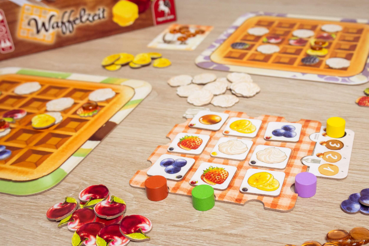 Bei Pegasus Spiele ist das Legespiel „Waffelzeit“ erschienen. In dem Familienspiel für 1-4 Personen ab 8 Jahren und einer Spielzeit von ca. 20-40 Minuten kreiert ihr möglichst schmackhafte Waffeln. Wer das Spiel testen möchte, hat bei den Pegasus Spieletagen, die aktuell laufen, die Möglichkeit dazu (wir berichteten).