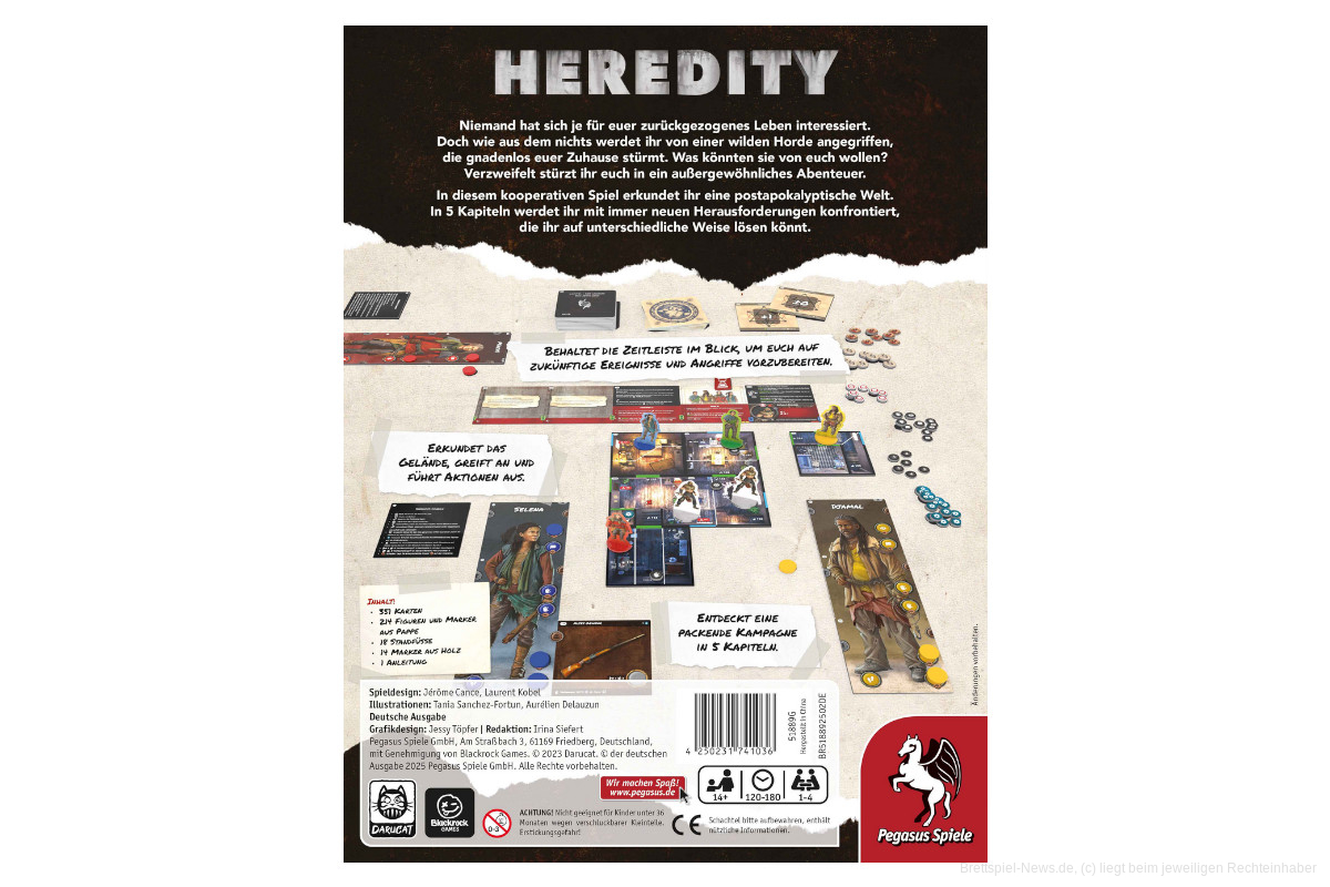 Die UVP für „Heredity - Die Geschichte von Swan“ liegt bei 49,99€. Wer Interesse hat, kann es u.a. direkt bei Pegasus Spiele, FantasyWelt oder der Spiele-Offensive bestellen.