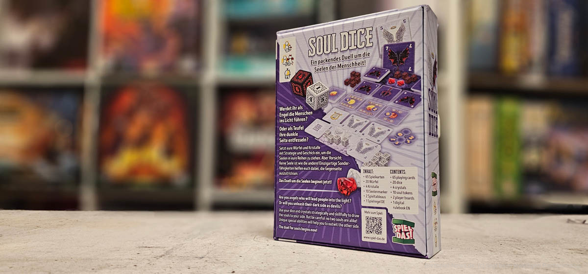 Der “SPIEL DAS!-Verlag” veröffentlichte im April 2025 das Erstlingswerk des Nachwuchsautoren Axel Streubel, "Soul Dice” - ein Würfeleinsatzspiel mit Mehrheitsbildung und Solo-Modus. Im Duell-Spiel für bis zu zwei Spieler ab acht Jahren geht es um nichts weniger als die unsterblichen Seelen der Menschen, die es im Wettstreit zwischen Engel und Teufel zu gewinnen gibt. Für die passenden Illustrationen sorgte Christian Schaarschmidt und die Spieldauer ist mit 25 Minuten angegeben.