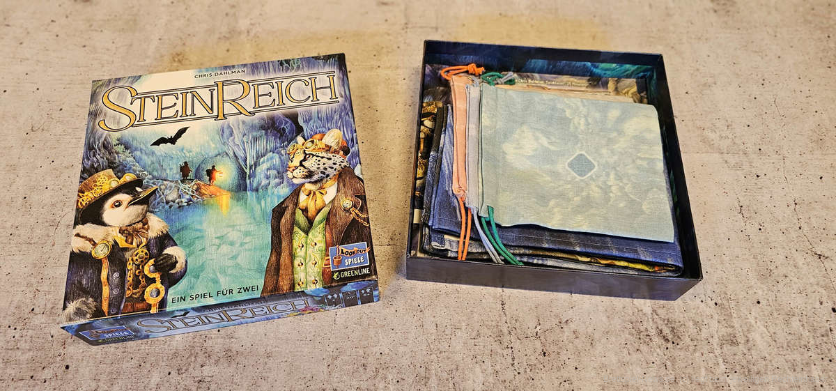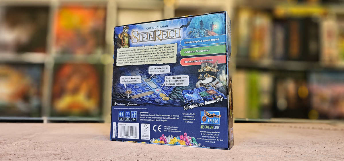 Bei “Steinreich”, dem neuesten Spiel der Spielereihe für zwei von Lookout Spiele, wetteifern Sir Ozelot und Professor Pinguin darum, die meisten Edelsteine zu sammeln. Als Preis winkt die Ehre, dem neu entdeckten Höhlensystem einen Namen zu geben.
