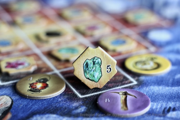 Sobald alle Werkzeugplättchen genutzt wurden, endet das Spiel. Neben den Edelsteinen mit festem Punktwert können über Geoden und Cälestiten noch Amethyste aus Stoffbeuteln gezogen werden, die ihre Punkte erst am Ende offenbaren.