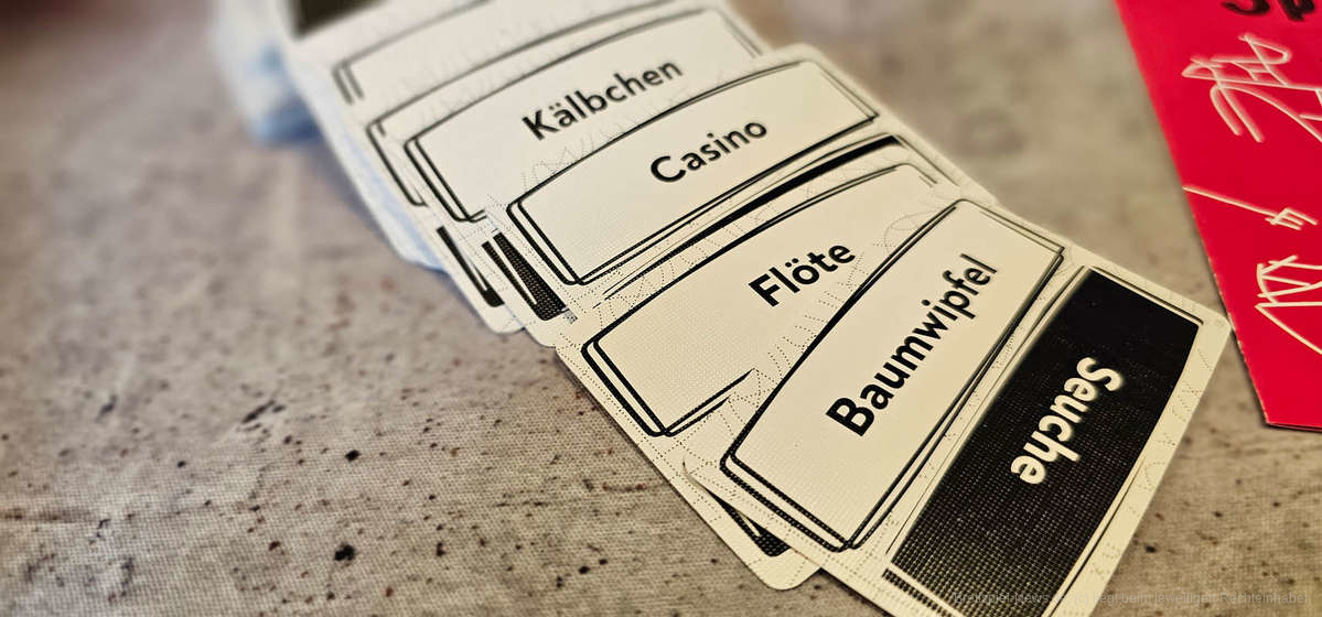 Zu Beginn einigt man sich, welche Begriffe gezeichnet werden, für den Einstieg werden die schwarzen Begriffe auf weißem Hintergrund empfohlen. Sobald jeder Teilnehmer Stift und Tafel hat, kann es beginnen. Die Tafeln sind individuell anders und bieten mit den Rückseiten insgesamt 16 unterschiedliche Linienmuster.
