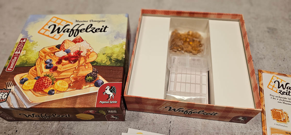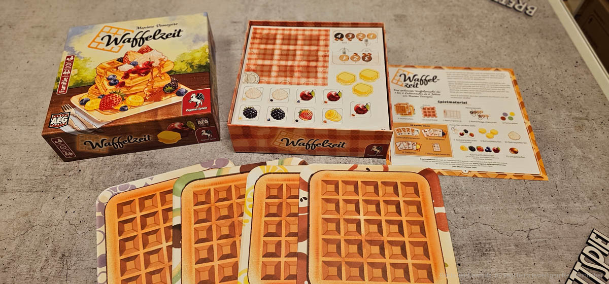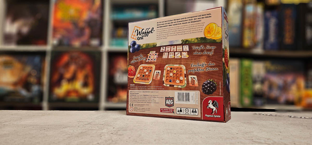 Pegasus hat im November 2024 mit “Waffelzeit” ein Legespiel für 1 bis 4 Leckermäuler ab 8 Jahren veröffentlicht (wir berichteten). Nun wollen wir einen Blick auf die Inhaltsangabe wagen und euch weitere Bilder zeigen.