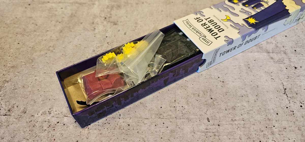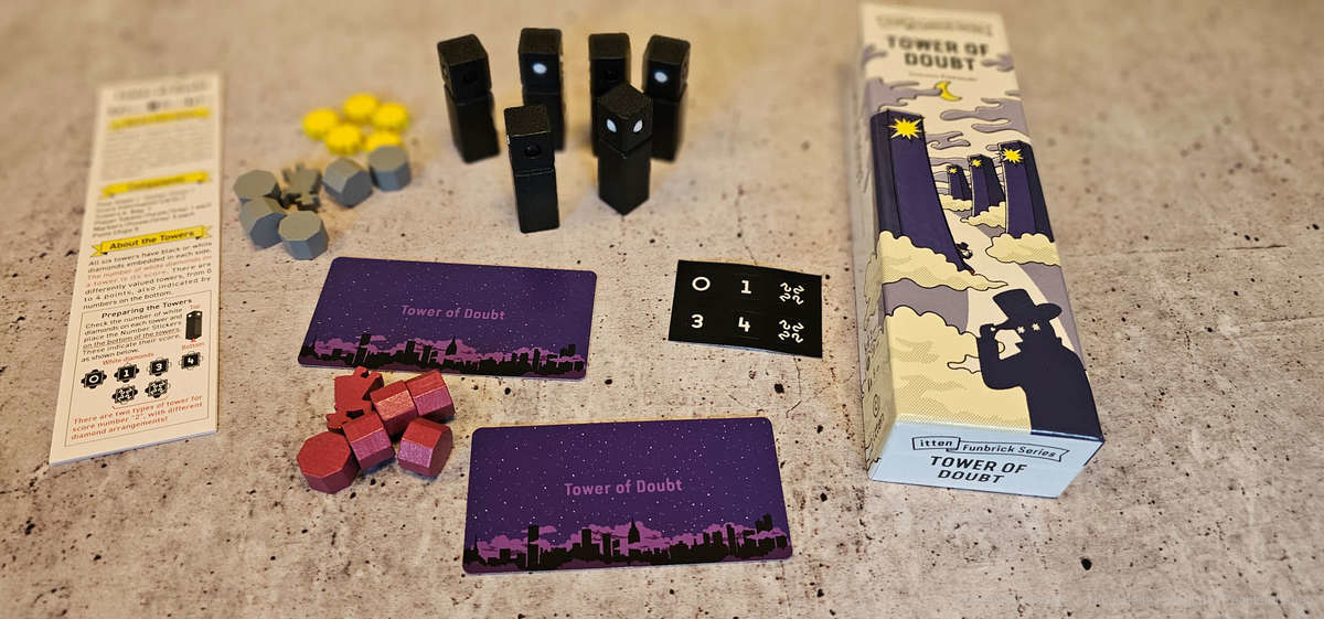 Bereits 2012 erschien die erste Version des damals noch “Türme der Verschwörung” genannten Spiels in Japan. Im Oktober 2024 hat nun der Verlag “itten” das Duell-Spiel von Susumu Kawasaki unter dem Titel “Tower of Doubt” erstmals auf Englisch veröffentlicht.