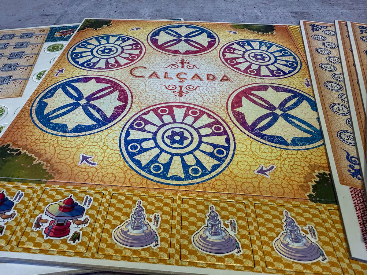 Nein, es geht nicht um den nächsten Azul-Ableger, dennoch könnte man beim Anblick der Spielauslage von “Calçada” an das Spiel des Jahres von 2018 erinnert werden.
