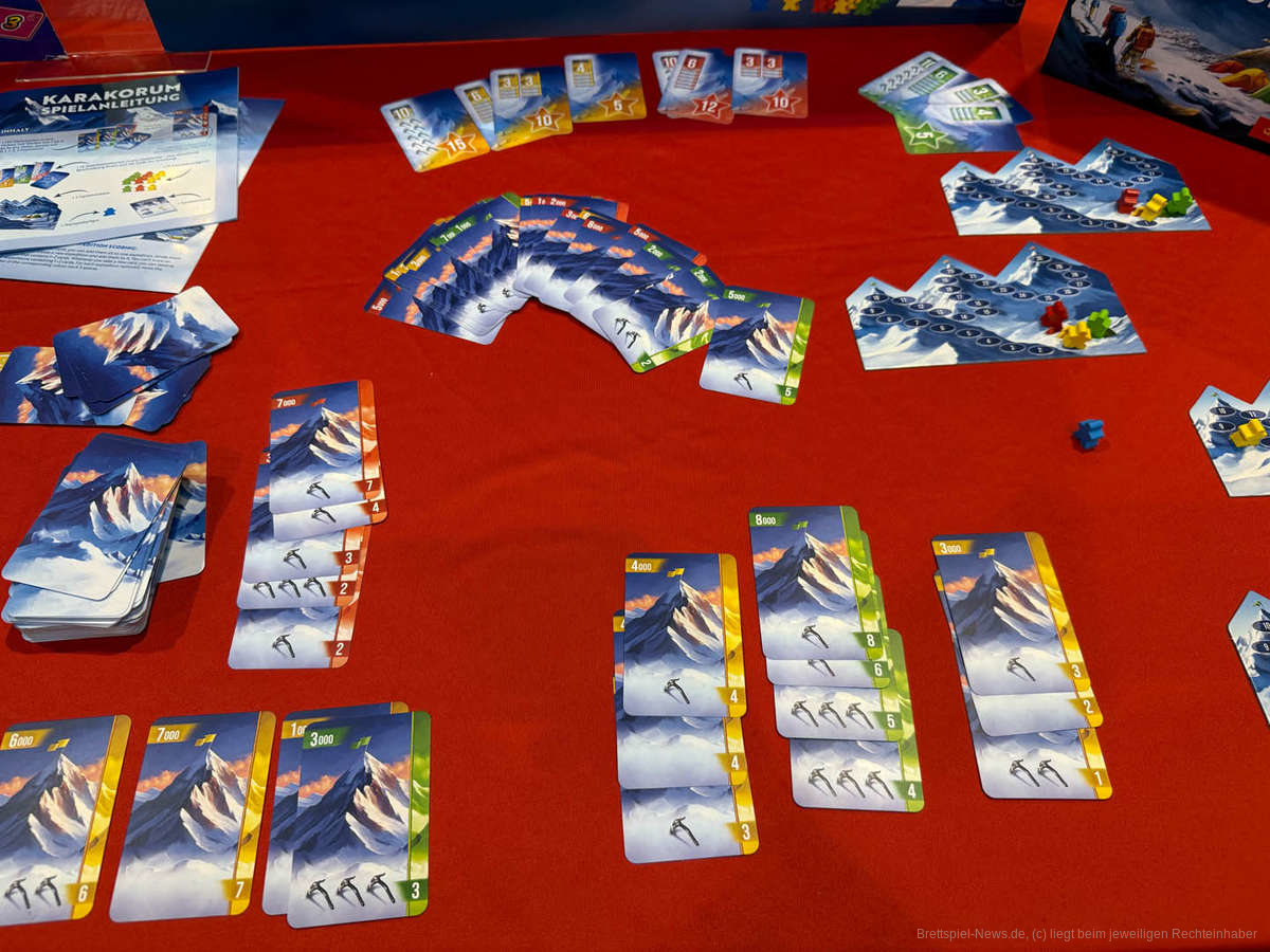 In “Karakorum” leiten zwei bis vier Spieler Expeditionen zu drei der vier Achttausender im namensgebenden Gebirge in Südasien. Eine Partie des Kartenspiels mit Sammelelementen und Auftragserfüllung soll etwa 20 bis 30 Minuten dauern.