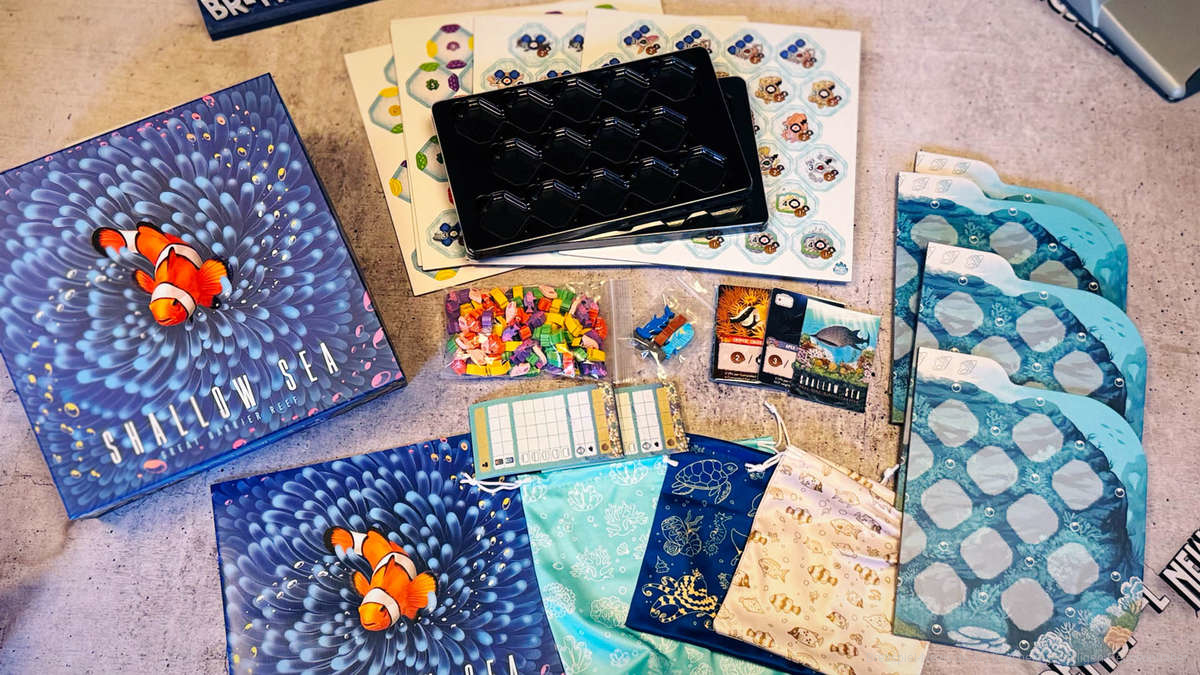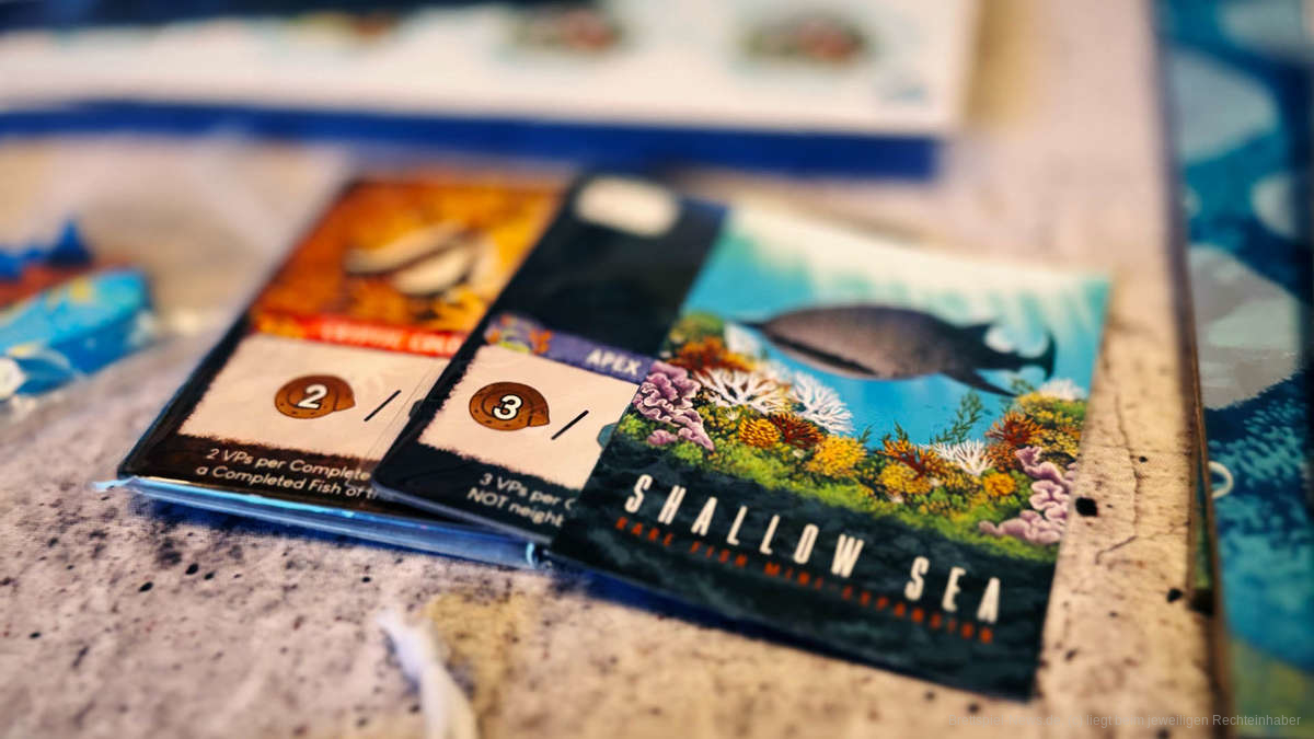 - Das Mindestalter von 14 Jahren und das Rating von BoardgameGeek (7,9) lassen “Shallow Sea” komplexer wirken.