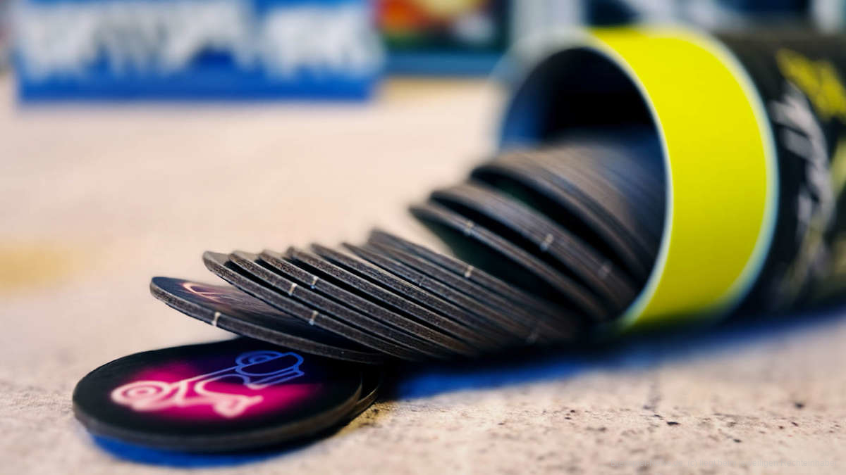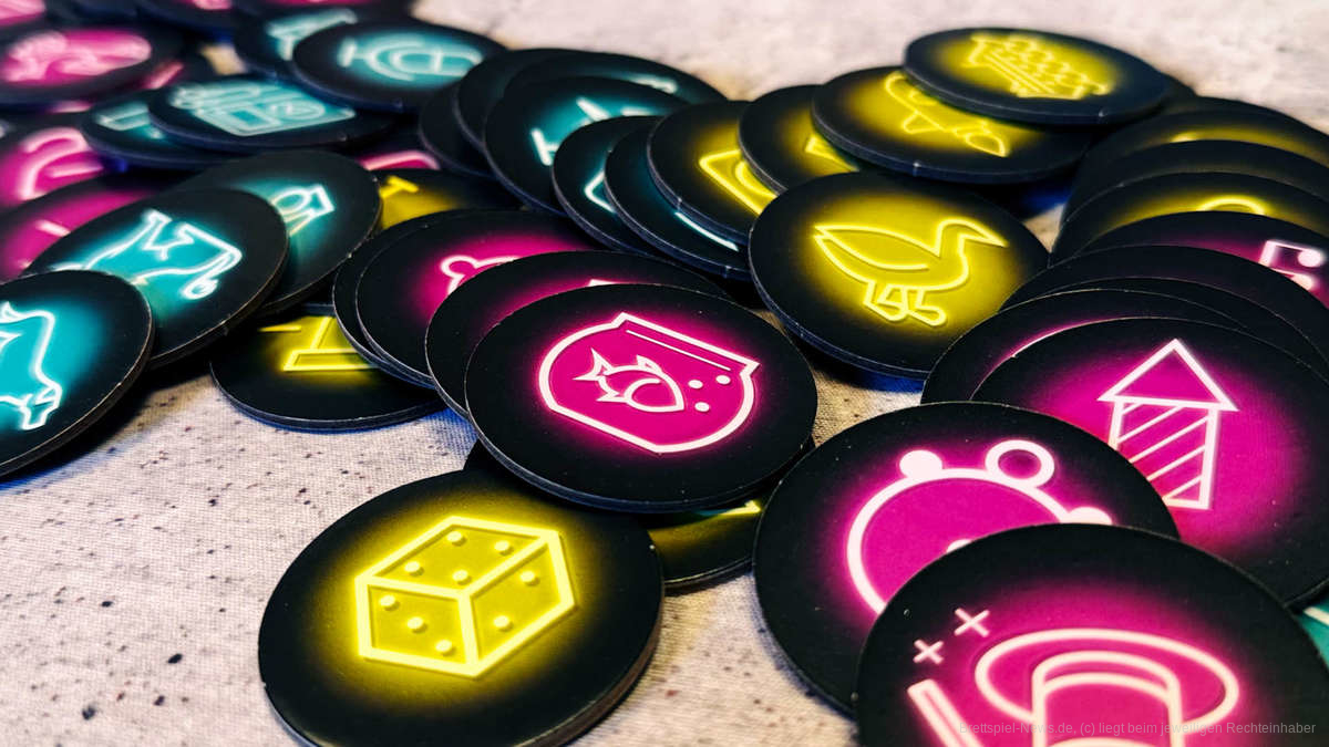 "Let's talk Neon" wird aus seiner Röhre geschüttet und kann direkt begonnen werden. Die 50 Plättchen zeigen Motive, die es darzustellen gilt.