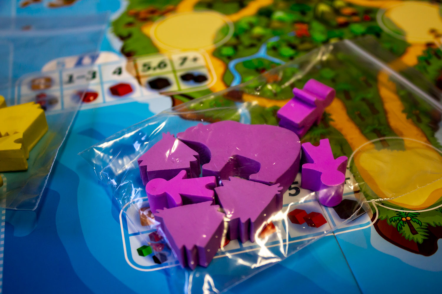 Kommen wir zu der Optik: Diese ist sehr gelungen und lädt direkt zum Spielen ein. Die farbenfrohe Insel und auch die Karten sind sehr übersichtlich geraten. Das Orientieren geht schnell von der Hand. Die vielen Holzelemente passen perfekt zur Optik, die das Spiel definiert. Der Comic-Look, kann als gelungen gelten.