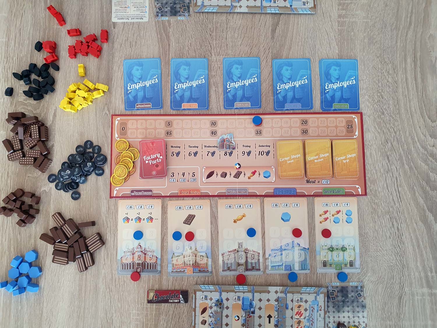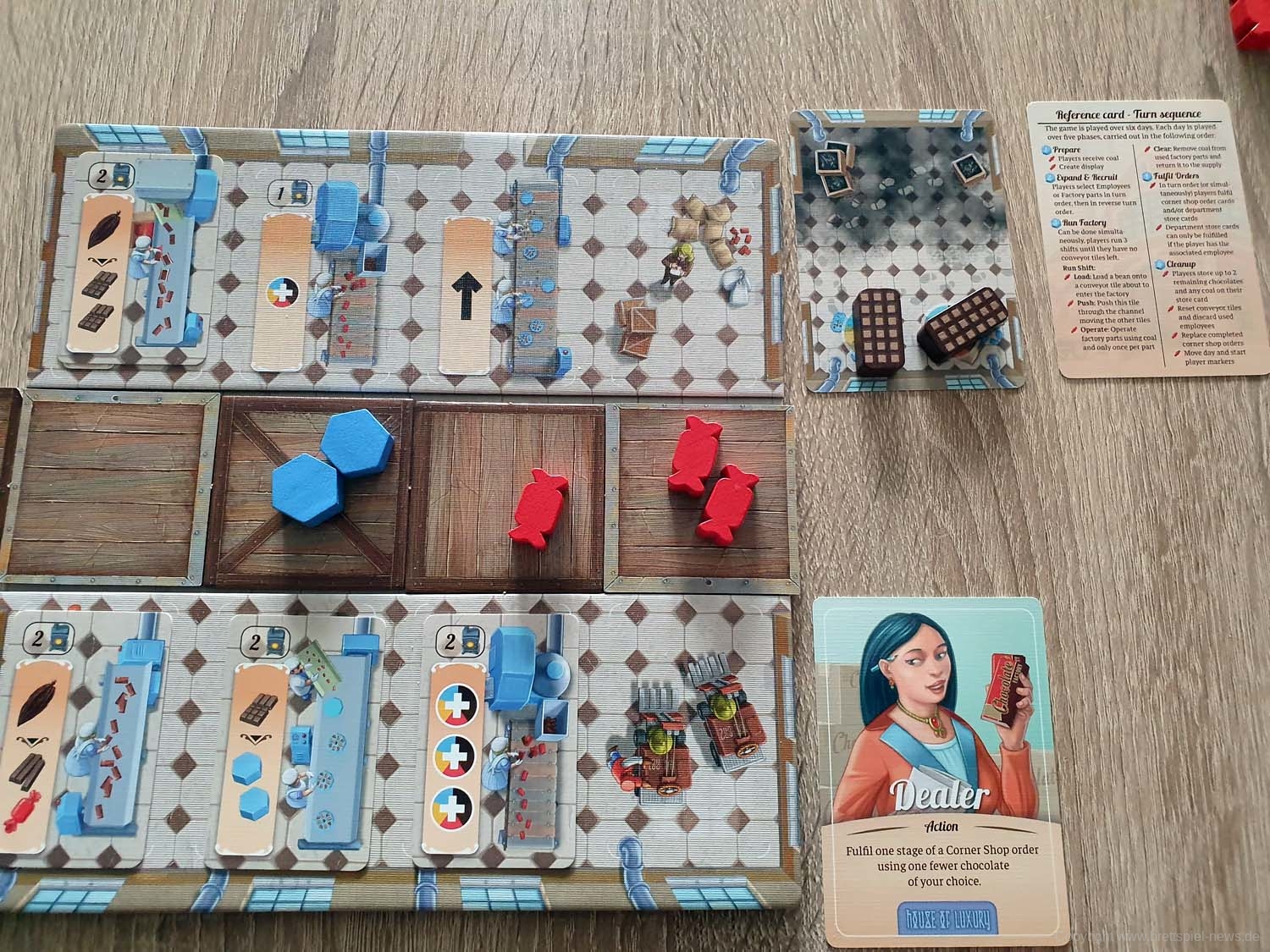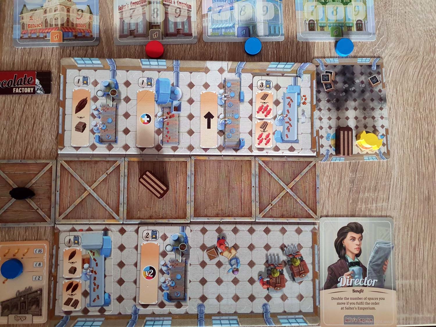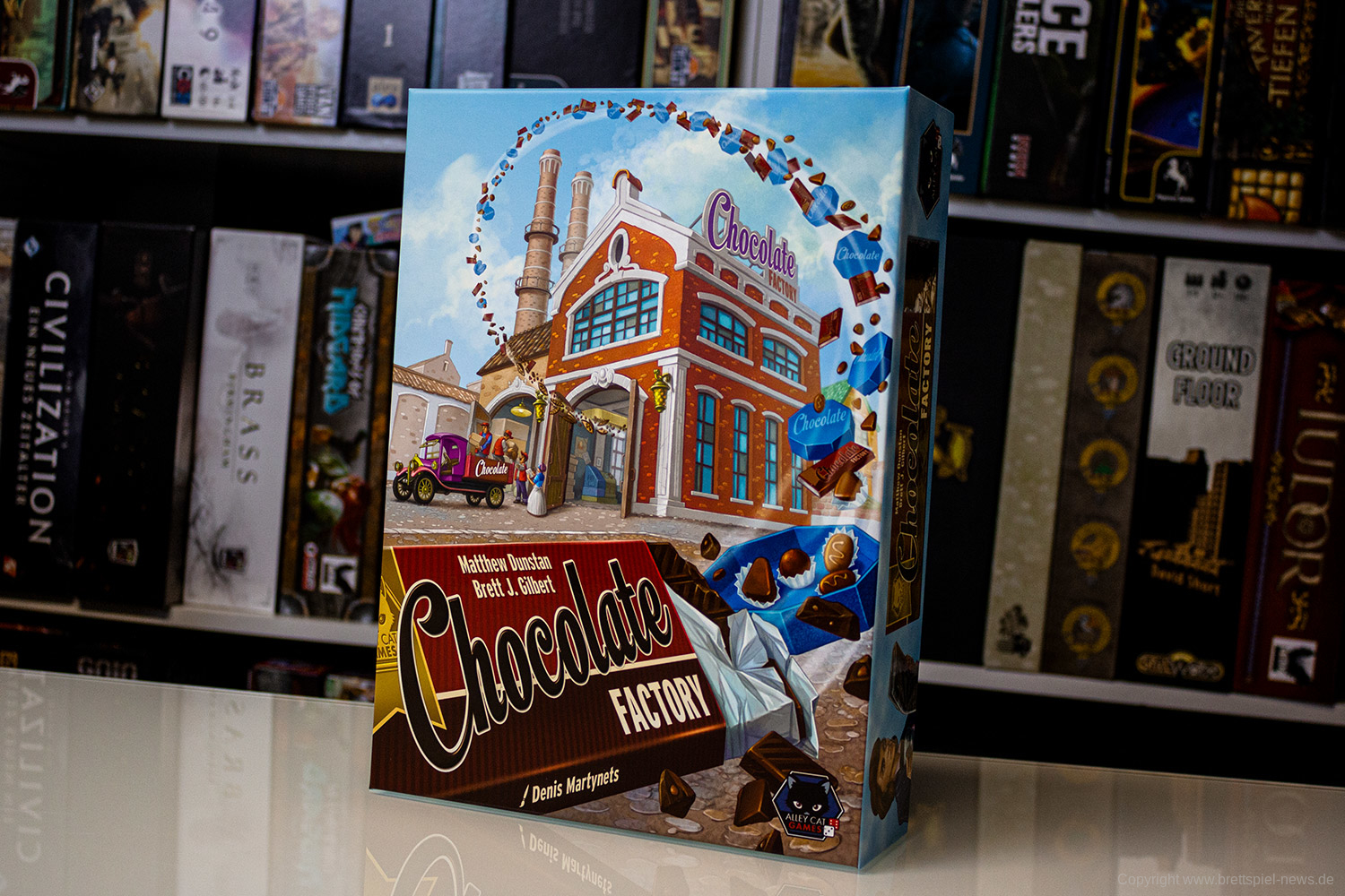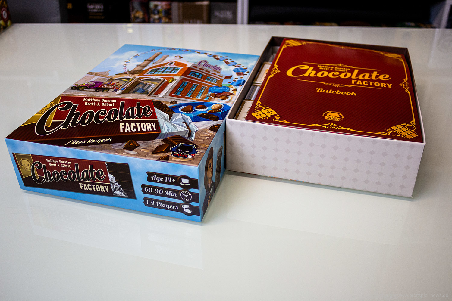 Das Spiel ist für 1-4 SpielerInnen und wird 45-90 Minuten Spielzeit bieten. Chocolate Factory stammt von den Autoren Matthew Dunstan und Brett J. Gilbert. Es ist das frühe 20. Jahrhundert und Unternehmern werden gegründet, die neue Wege zur Herstellung und Vermarktung von Schokolade experimentieren. Zum einen muss die Fabrik ausgebaut werden und Schokolade wandert über das Produktionsband. Sowohl Setting als auch erste Bilder machen einen guten Eindruck. Weitere Informationen folgen, sobald wir das Spiel zum Testen erhalten.