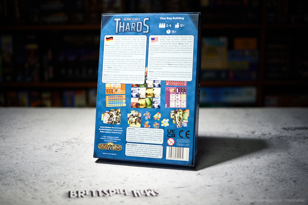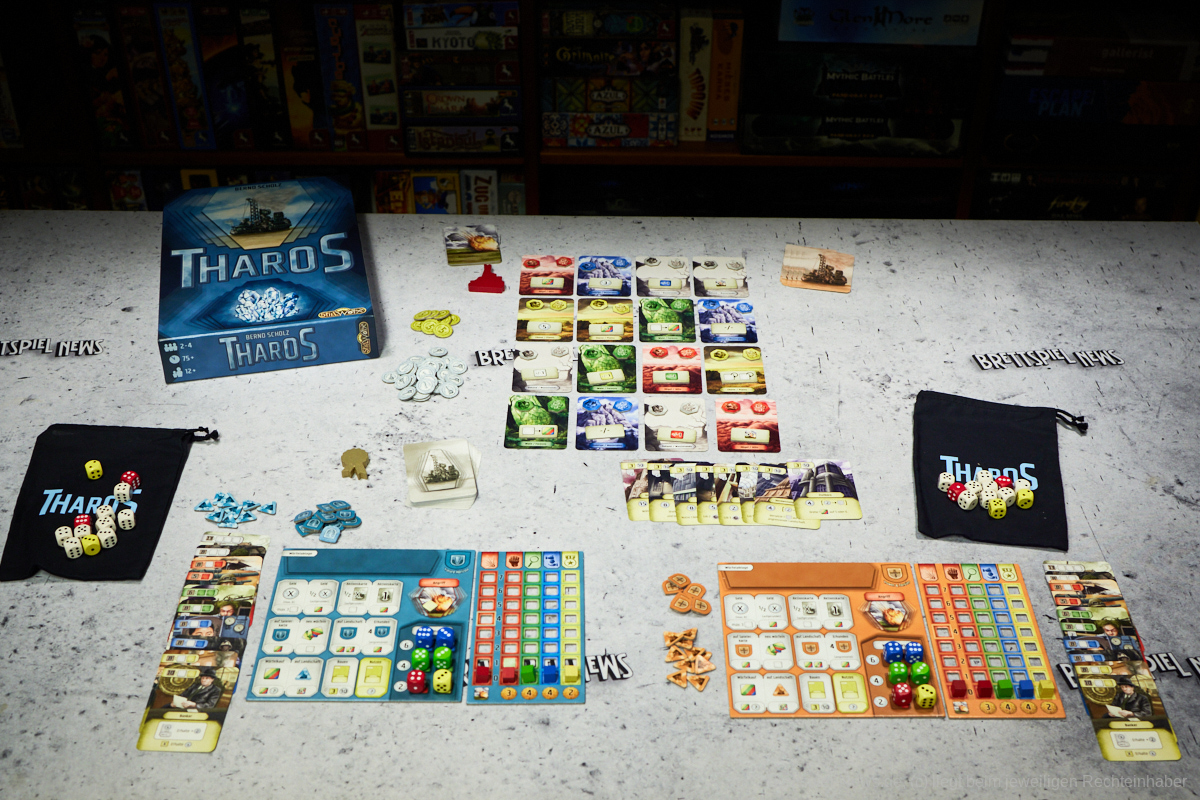 Das komplexe Würfelspiel THAROS wurde vor kurzem an die Unterstützer:innen auf Kickstarter und in der Spieleschmiede ausgeliefert. Damit ist es das erste Spiel des SPIELWORXX Verlags (DIE MACHER, PAX PAMIR), das auch über die Spieleschmiede realisiert wurde. THAROS ist ein Dice Placement & Bad Building Spiel für zwei bis vier Spielende ab zwölf Jahren. Eine Partie dauert ungefähr 75 Minuten. Der Autor von THAROS ist Bernd Scholz (TRAVEL THE STATES), die Illustrationen stammen von Harald Lieske (FUNKENSCHLAG, LA GRANJA, THE CASTLES OF BURGUNDY).