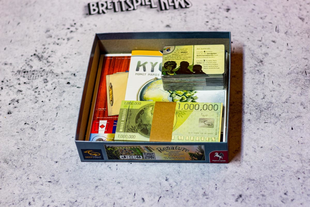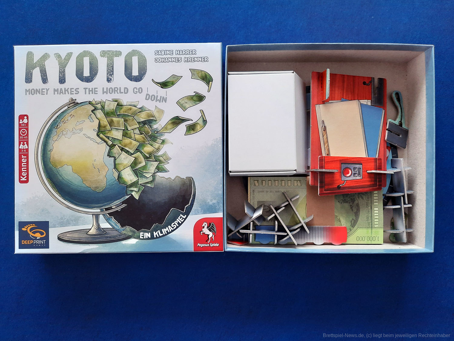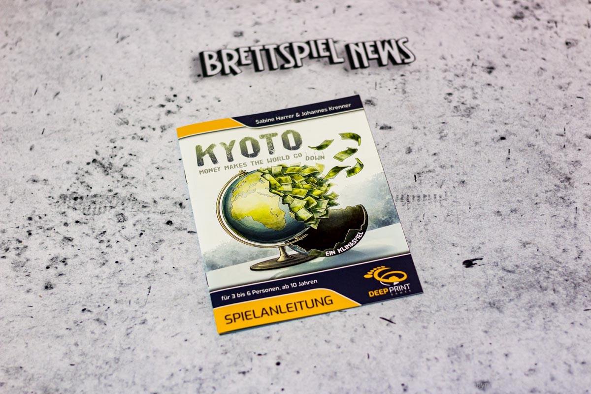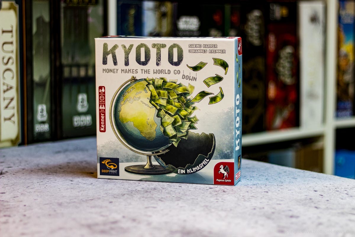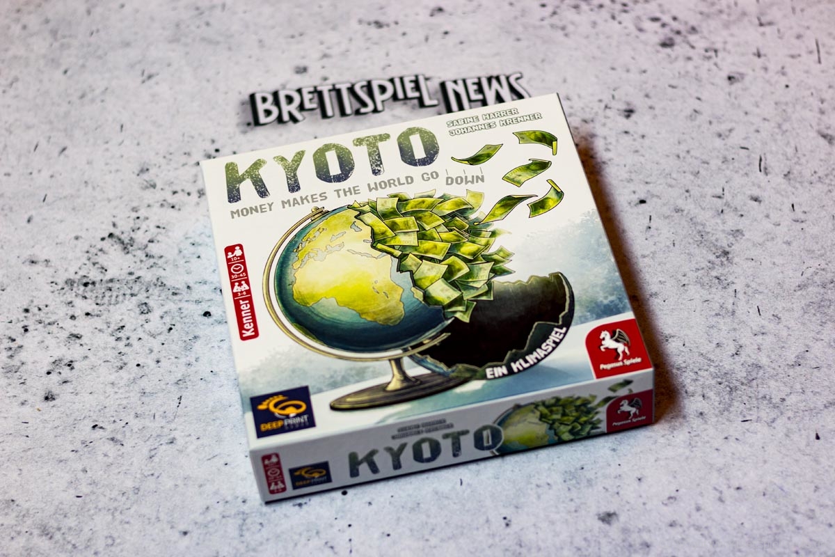 DEEP PRINT GAMES hat mit KYOTO seinen zweiten Titel veröffentlicht. Das Spiel richtet sich an 3-6 Spieler ab 10 Jahren und soll in 30-45 Minuten die Klimakonferenz satirisch zum Thema haben. Allein der Untertitel „Money makes the world go down“ zeigt, dass im Spiel eventuell doch mehr als „nur“ Satire steckt. Der Preis liegt bei 24,99 € als UVP. Die Autoren sind SABINE HARRER, JOHANNES KRENNER – die Grafik stammt von CHRISTIAN OPPERER. Das Spiel ist derzeit verfügbar.