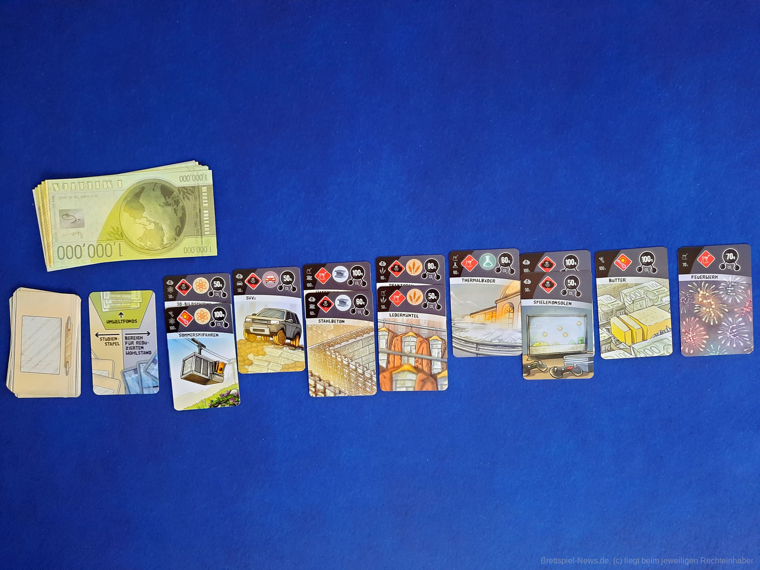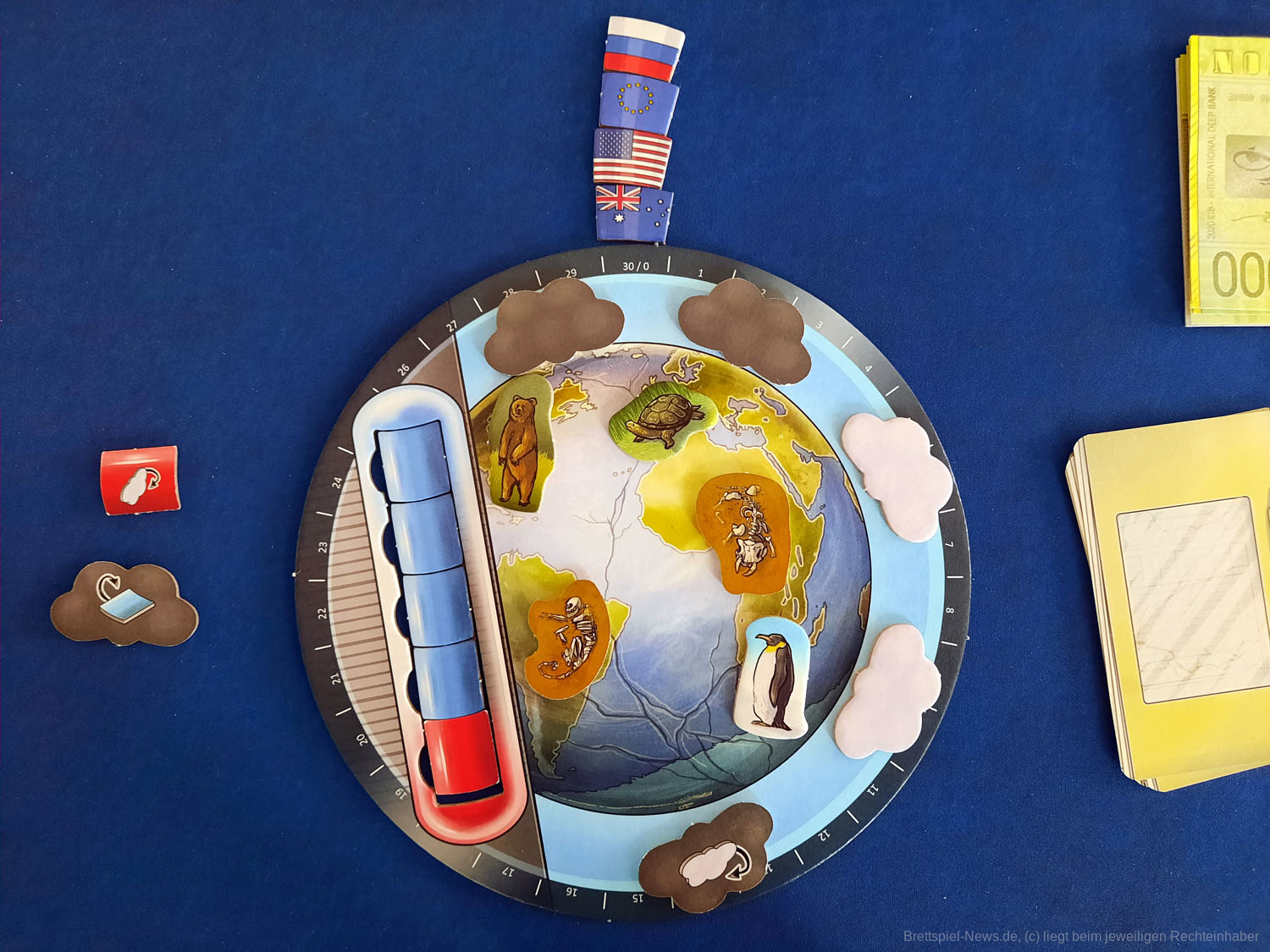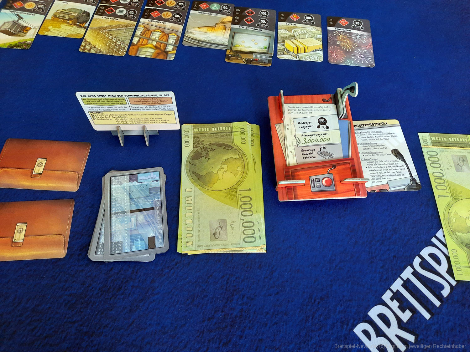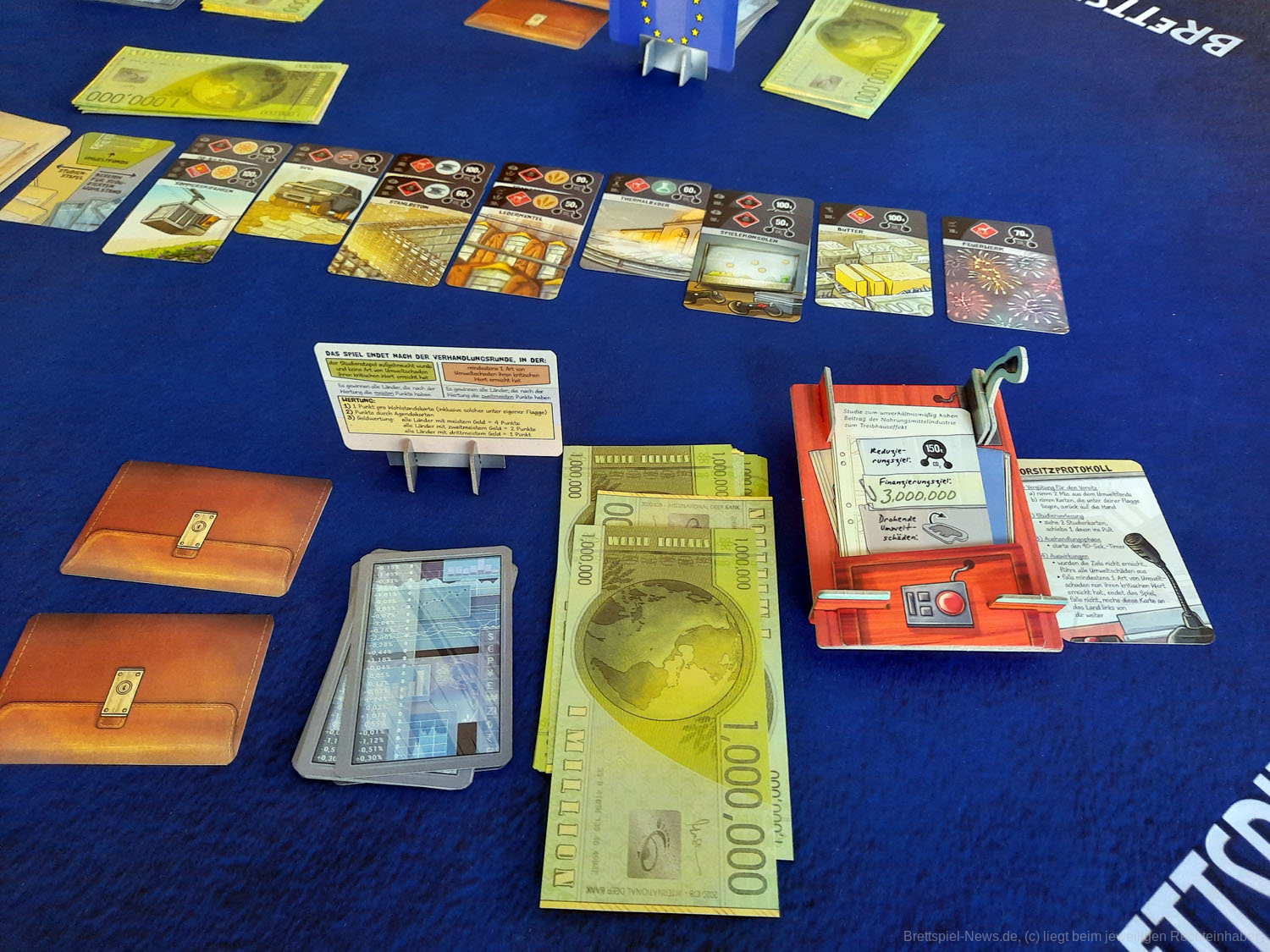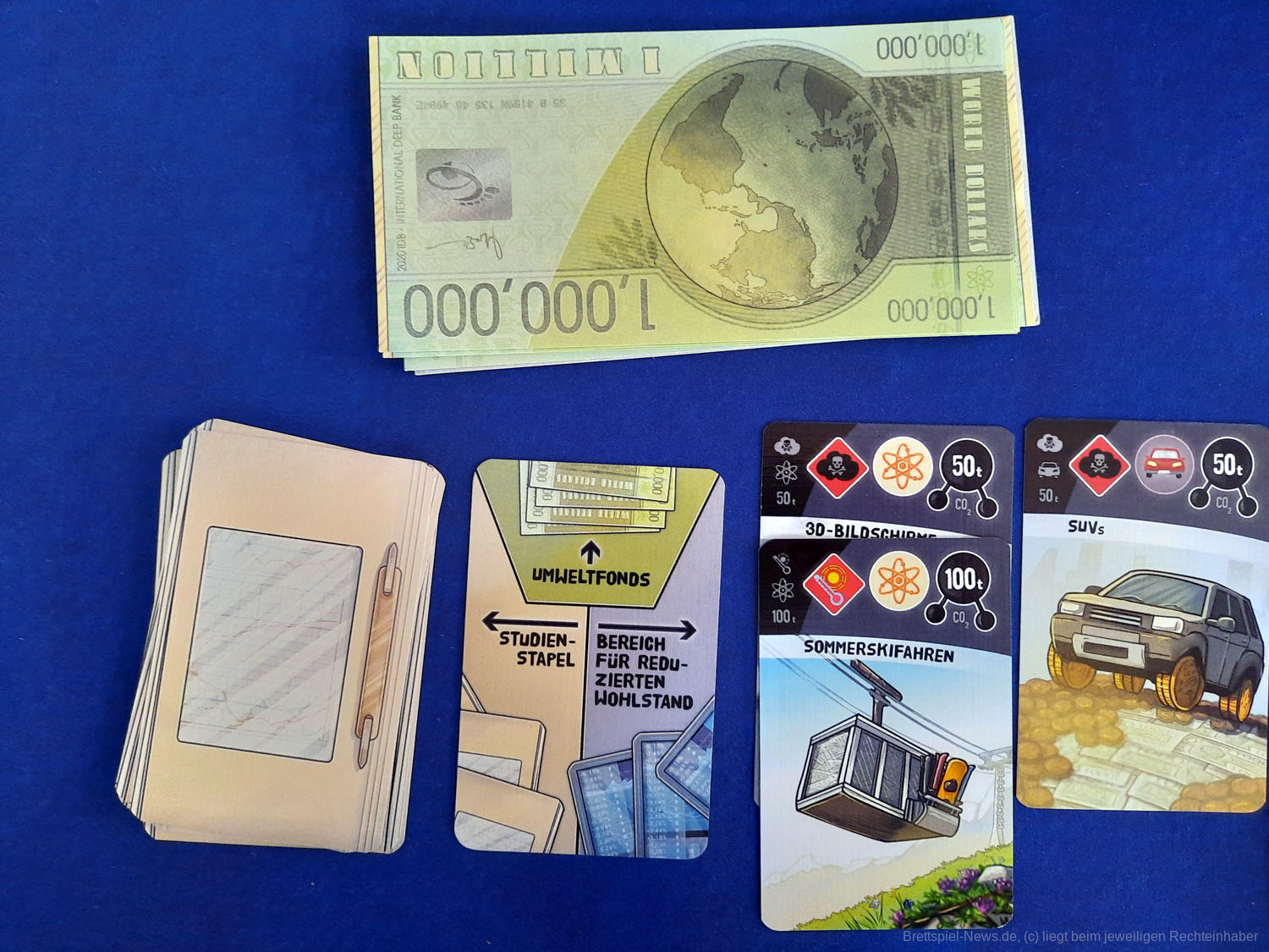 DEEP PRINT GAMES hat mit KYOTO seinen zweiten Titel veröffentlicht. Das Spiel richtet sich an 3-6 Spieler ab 10 Jahren und soll in 30-45 Minuten die Klimakonferenz satirisch zum Thema haben. Allein der Untertitel „Money makes the world go down“ zeigt, dass im Spiel eventuell doch mehr als „nur“ Satire steckt. Der Preis liegt bei 24,99 € als UVP. Die Autoren sind SABINE HARRER, JOHANNES KRENNER – die Grafik stammt von CHRISTIAN OPPERER. Das Spiel ist derzeit verfügbar.