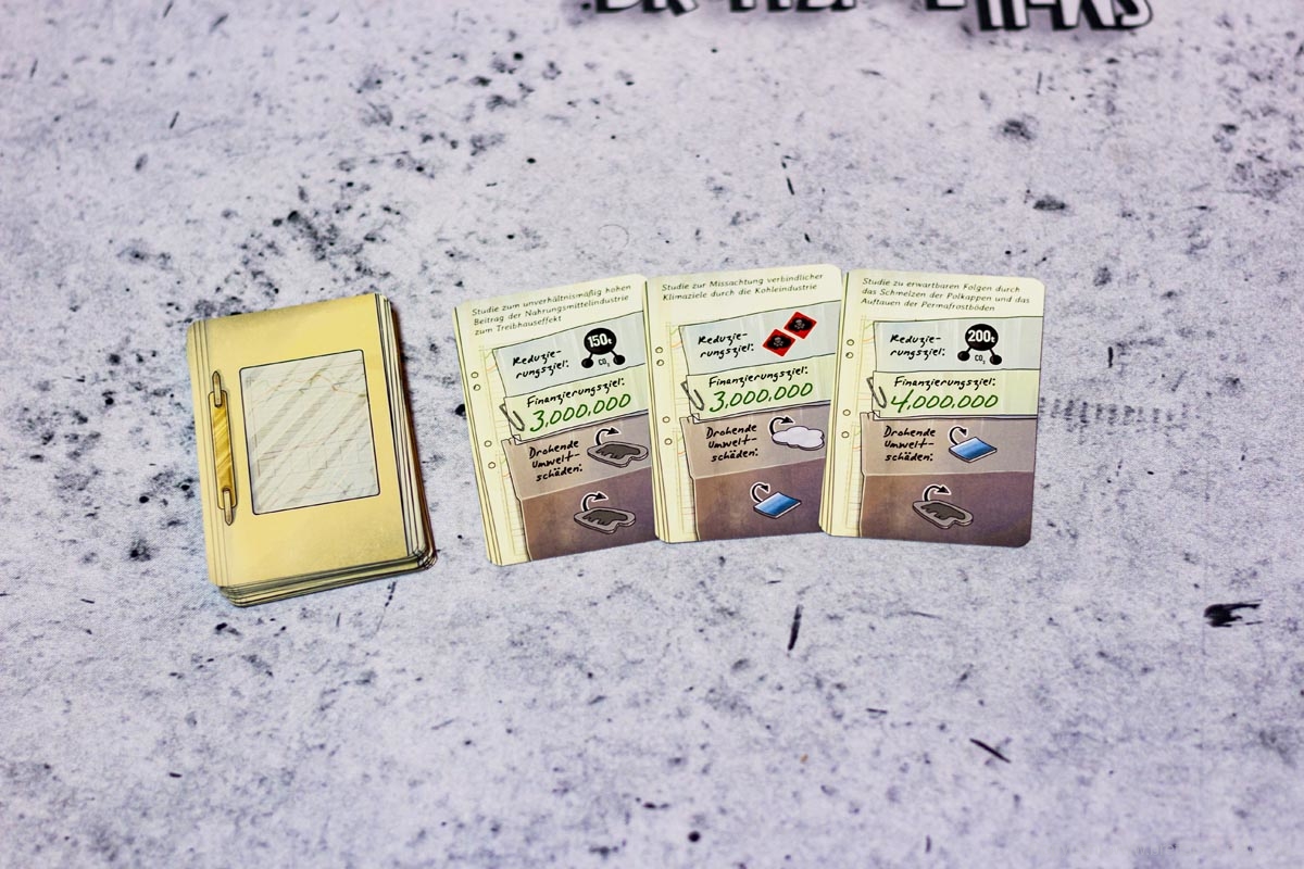 Das satirische Familienspiel Kyoto thematisiert den Klimawandel, ohne dabei allzu ernst zu sein. In jeder Runde stellt ein Spieler eine Studie vor, die finanzielle Unterstützung sowie die Reduzierung bedrohlicher Faktoren, wie z.B. Luftverschmutzung, erfordert. Werden die Ziele nicht erreicht, kommt es zu negativen Auswirkungen für die Welt. Aber das würdet ihr ja nie zulassen… oder?