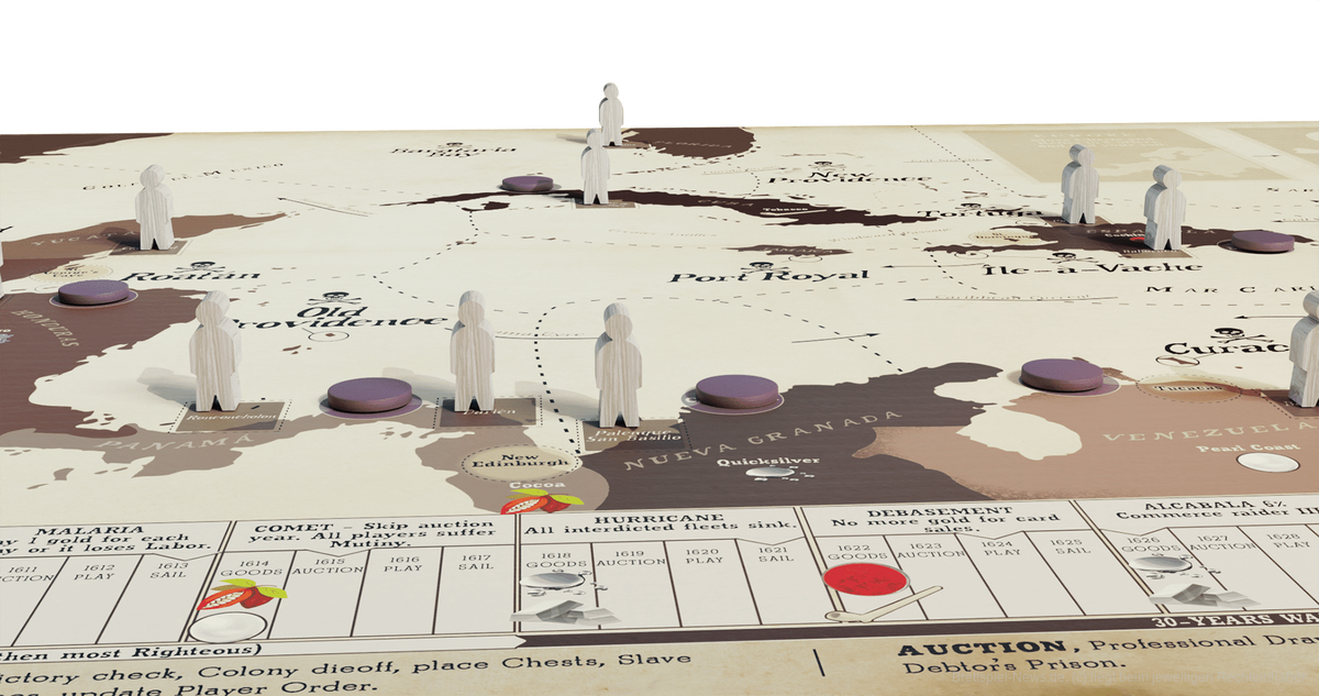In dem komplexen asymmetrischen Spiel können 1-5 Personen ihre eigene Geschichte in der rauen karibischen See des 17. Jahrhunderts schreiben, indem sie von Insel zu Insel segeln und dort Waren transportieren, schmuggeln oder plündern. Die Illustrationen stammen aus der Feder von Anne Isaksson (Stationfall) und die Spielzeit soll 60-150 Minuten betragen.