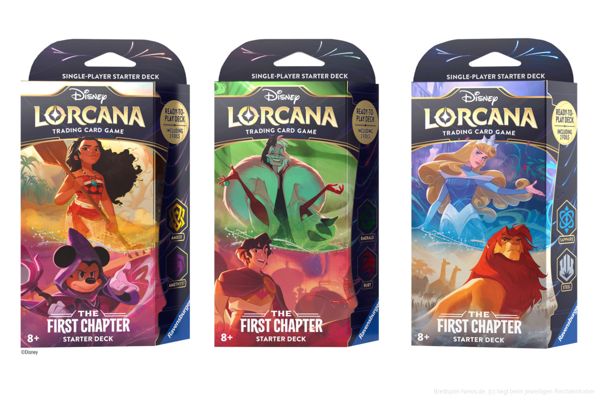 Mit „Disney Lorcana“ wird Ravensburger ein neues Trading Card Game veröffentlichen. Das Spiel soll ab dem 1. September 2023 im Handel erhältlich sein. Es soll jedoch im spezialisierten Fachhandel schon vorab am 18. August 2023 erscheinen, so Ravensburger, begleitet von einem umfangreichen Programm für Organized Play. Damit könnten Prerelease Turniere gemeint sein, wie sie von anderen TCGs bekannt sind.