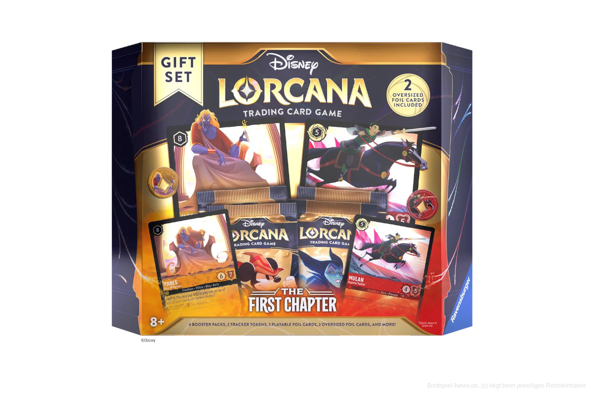 Es wird ein laut Ravensburger ein Geschenk-Set geben, dass zwei übergroße Foil-Sammelkarten, zwei spielbare Foil-Karten und zudem vier Booster Packs und Marker enthält.