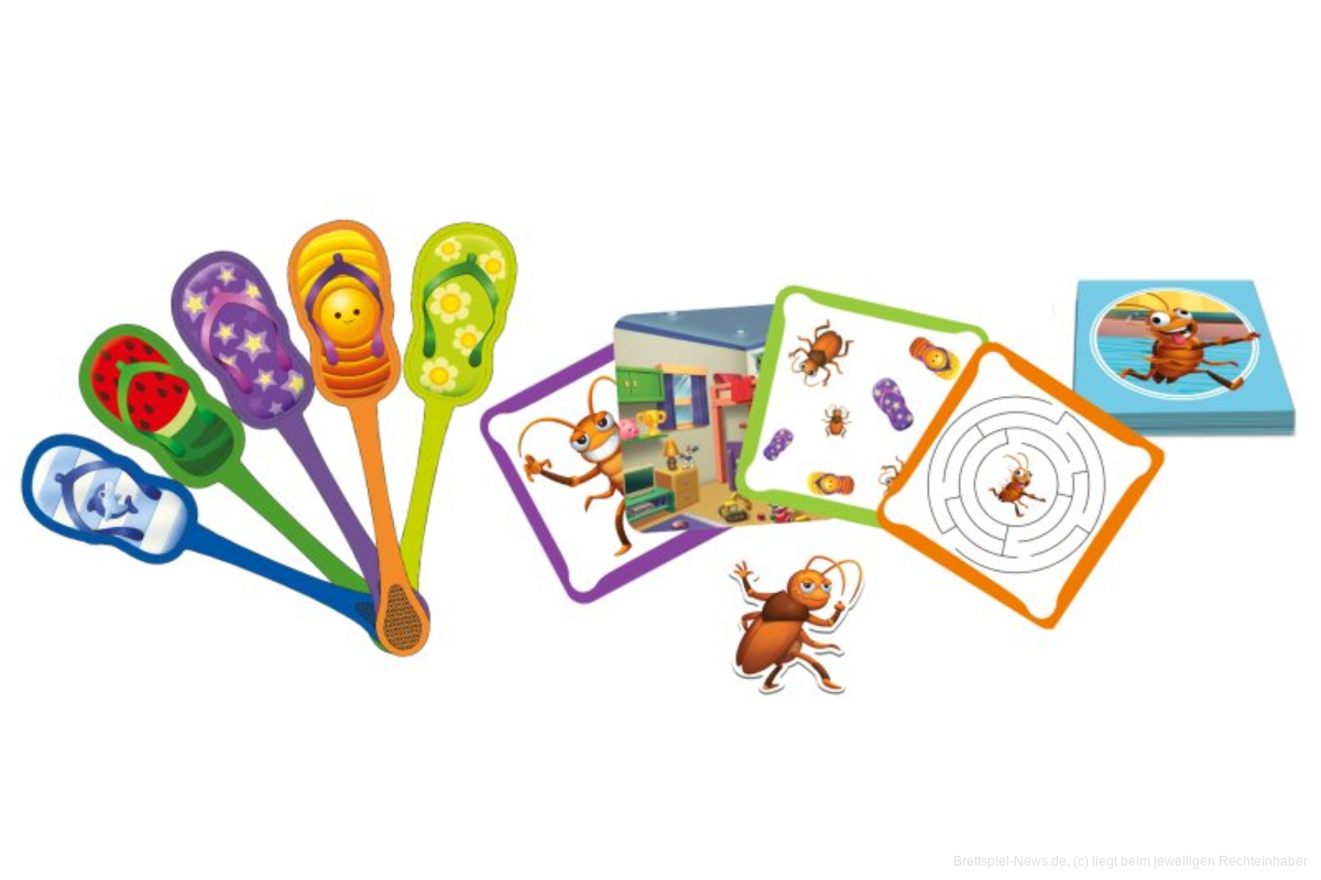 50 Aufgabenkarten stehen parat und testen bei „Kakerla-Klatsch“ eure Geschwindigkeit und Beobachtungsgabe. Nehmt eure Klatschen und legt die Kakerlake in die Tischmitte. Jedes Mal, wenn eine Karte aufgedeckt wird, müsst ihr richtig klatschen.