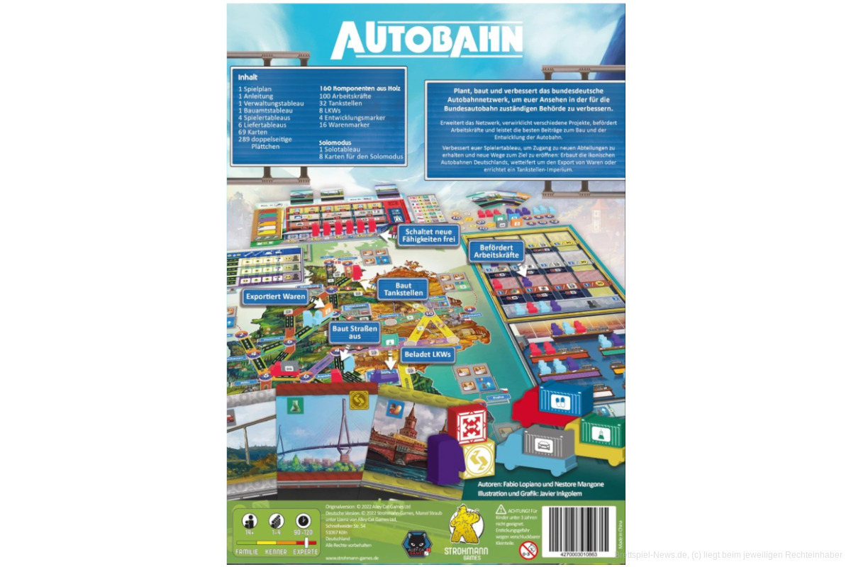 In dem Expertenspiel „Autobahn“ für 1-4 Personen ab 14 Jahren seid ihr Direktoren oder Direktorinnen der für die deutsche Bundesautobahn zuständigen Behörde und für den Ausbau des Autobahnnetzes verantwortlich.