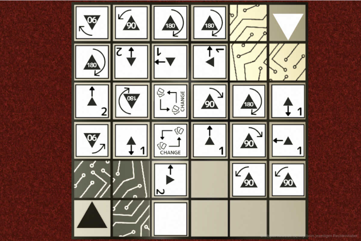 - Befehl öffnen - führt die Befehle aus, indem ihr euer Spieler-Token entsprechend den Werten auf dem Spielfeld bewegt; trefft ihr dabei auf ein Patch, aktiviert den entsprechenden Effekt