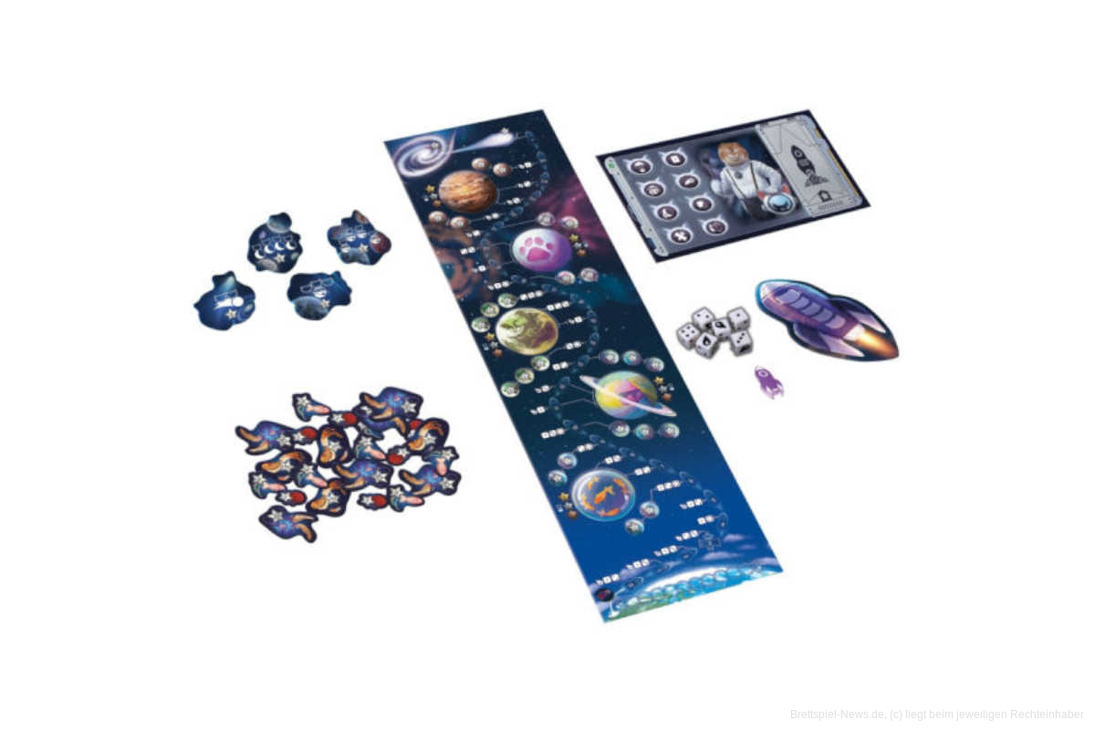 Wer sein Glück nicht überstrapazieren will, steigt an einem Mond oder einem Planeten aus. Denn wird das geforderte Würfelergebnis verfehlt, explodiert die Rakete und alle Insassen müssen in Rettungskapseln zurück zum Start. Nur wenn du deine tapfere Weltraum-Katze rechtzeitig auf einem Mond oder Planeten in Sicherheit gebracht hast, entgehst du der „CAT”-astrophe und bekommst für diese Runde Punkte.