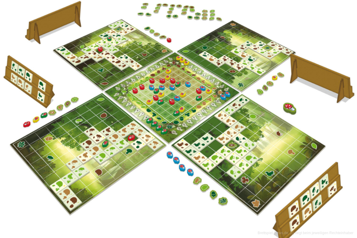 Räumt ihr diese Pilze vom Lichtungstableau wieder ab, indem ihr passende Waldplättchen spielt, bekommt ihr mehr Punkte. Wenn es euch gelingt, auf dem eigenen Tableau Pilze wachsen zu lassen, könnt ihr sie für Bonuszüge abgeben.