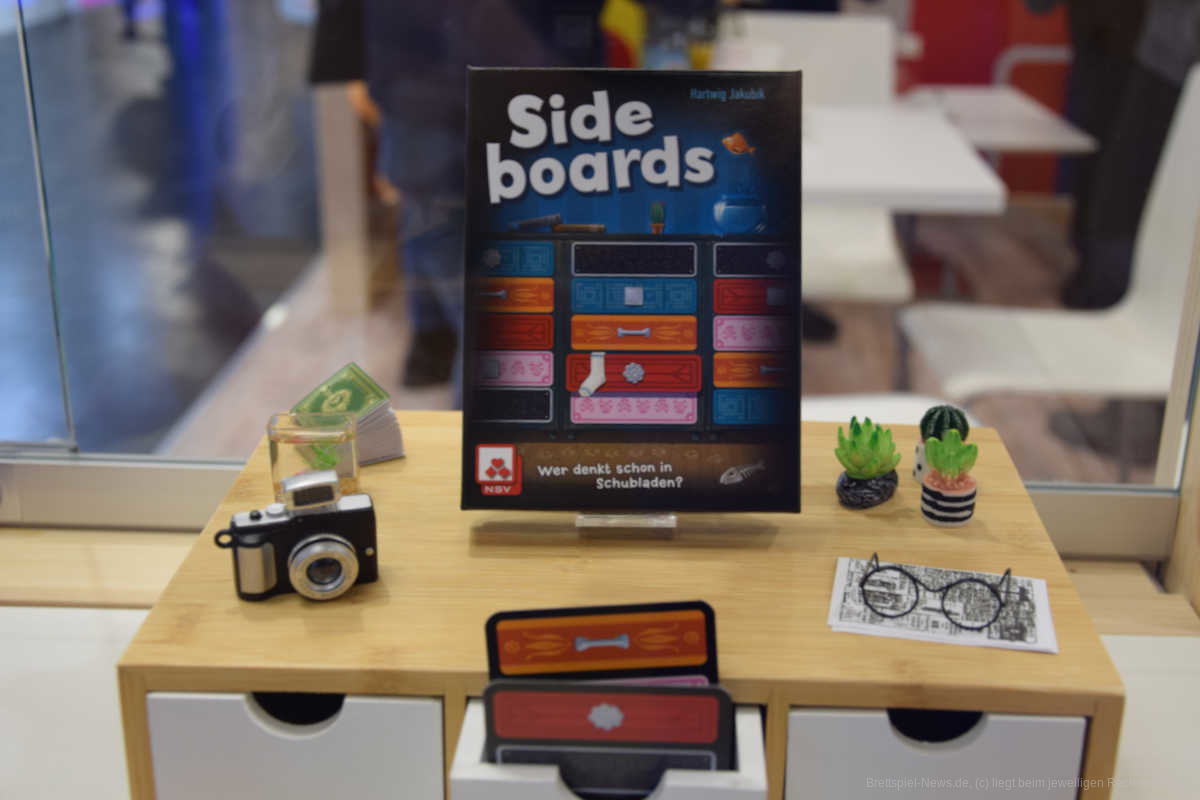 NSV – der Verlag hinter dem „Spiel des Jahres 2018”-Anwärter „The Mind” - bringt das Kartenspiel „Sideboards” heraus. In dem Spiel von Hartwig Jakubik mit dem Artwork von Oliver und Sandra Freudenreich knobeln 1-6 Spieler ab 8 Jahren simultan an ihrem perfekten Wohnzimmer-Setup; denn nur wer sein Sideboard clever anordnet, sammelt die meisten Siegpunkte und gewinnt das Spiel. Eine Partie ist fluffig in ca. 15 Minuten gespielt.