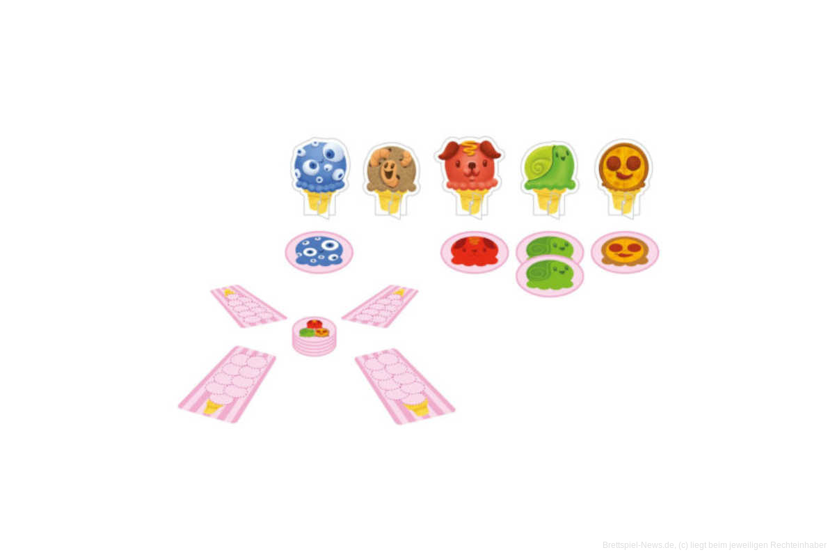Eine Eisdiele mit ganz verrückten Sorten erwartet euch in „Schrecklich schöne Eiscreme”. Versucht Sorten zu sammeln wie Schneckenschleim und Hot Dog-Eis. Auf der Rückseite der Karten sind drei mögliche Sorten abgebildet, wovon sich eine auf der Vorderseite wiederfindet. Deckt eine Karte auf und tippt vorher, welche Sorte es wohl sein mag. Liegt ihr richtig, kommt die Sorte in eure Sammlung. Wer seine Eiswaffel als erstes gefüllt hat, gewinnt. 2-5 Eis-Gourmets können hier ihr Glück versuchen.