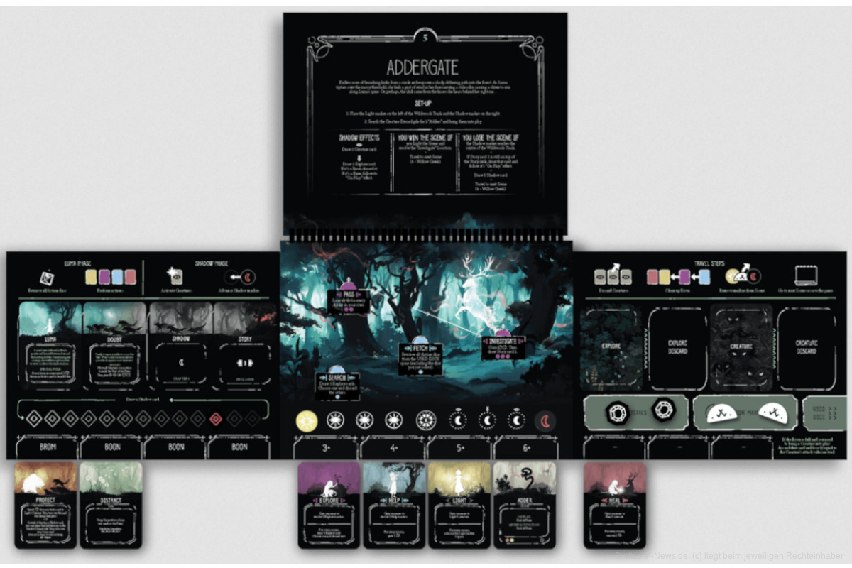 Aktuell könnt ihr auf Kickstarter das Solo-Abenteuer „Storyfold: Wildwoods“ unterstützen. Die Kampagne dazu ist bereits sehr erfolgreich und finanziert. Board Game Circus setzen die deutsche Version dazu um und die Vorbestellung dazu sollte ursprünglich bereits nächste Woche starten, wurde nun aber verschoben.