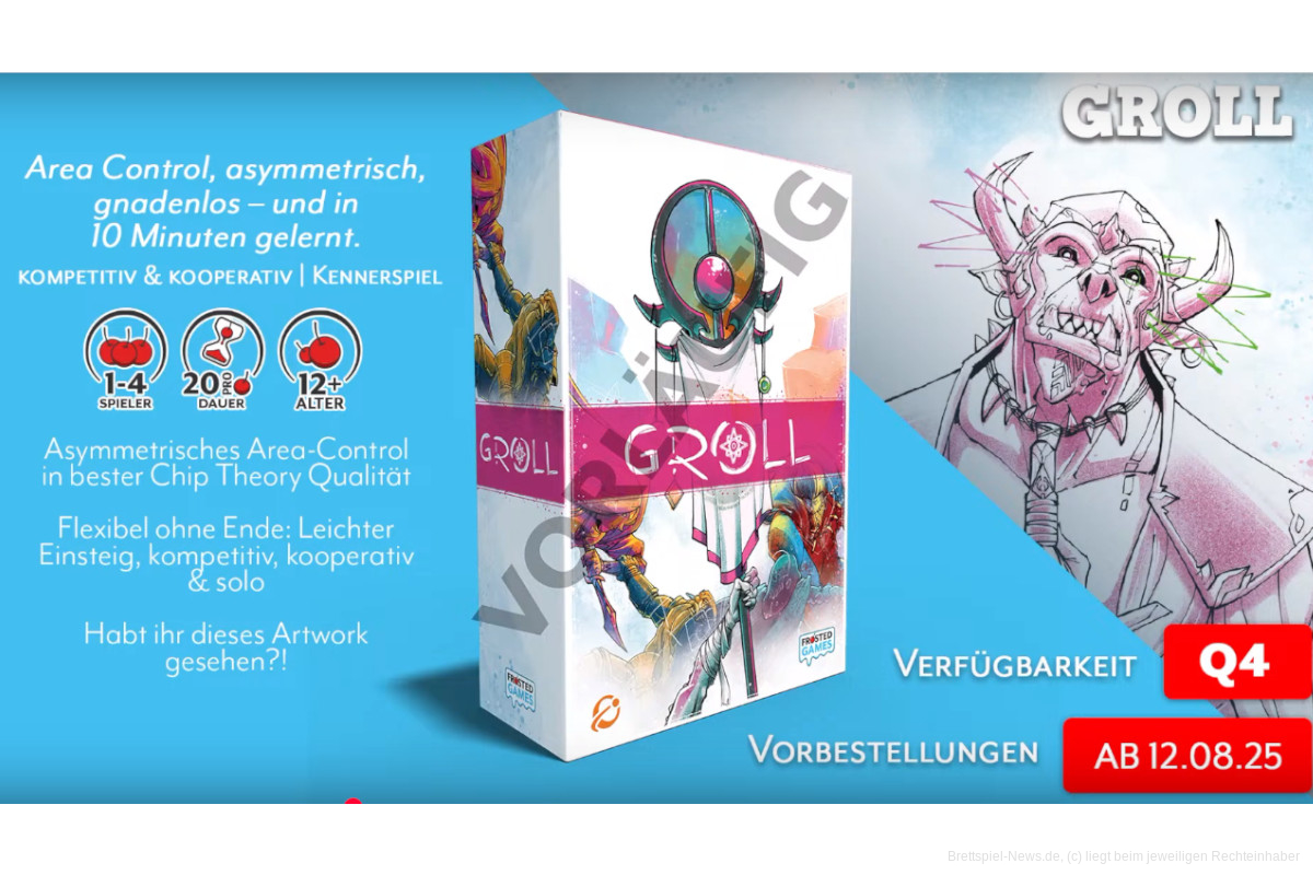 „Groll“ ist ein Area-Control-Spiel für 1-4 Personen, das ihr kompetitiv, kooperativ oder solo spielen könnt.