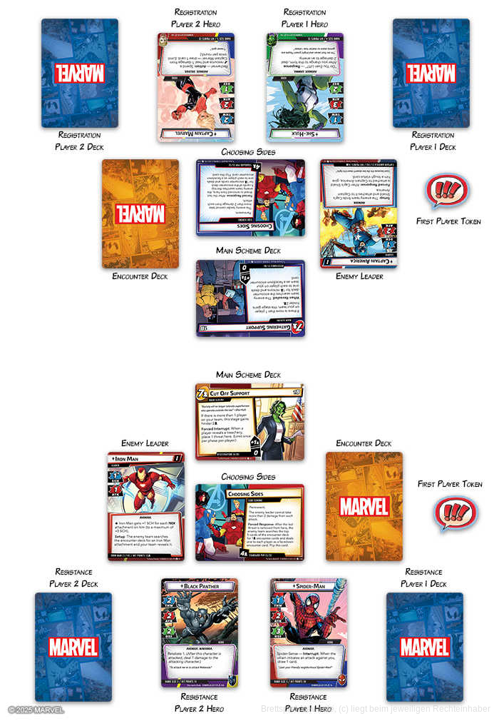 In der 9. großen Erweiterungsbox für Marvel Champions verzichtet FFG nun also auf weitere Bösewichte und ergänzt stattdessen das Spiel um 4 lose Szenarien, in denen die Spieler gegen Iron Man oder Captain Marvel (als Befürworter der Registrierung) bzw. gegen die Protagonisten der Freiheitskämpfer, Captain America oder Spider-Woman, antreten können. Unterstützt werden die beiden Parteien von nun an von Tigra (mit vorgefertigtem Aggression-Deck) und dem Hulkling (sofort spielbar mit neuen Protection-Karten). Zudem wurde bereits das erste Szenario-Pack nach der Erweiterung angekündigt: Synthezoid Smackdown. In selbigem wird der Bürgerkrieg fortgesetzt und durch She-Hulk (Team Registrierung) und Vision (Widerstand) ergänzt. Außerdem werden 2 weitere, noch nicht offiziell benannte, Helden als Teil der Content-Welle zum Universum dazustoßen; Leaks deuten hierbei auf die beiden Avenger Hercules und Wonder-Man hin.