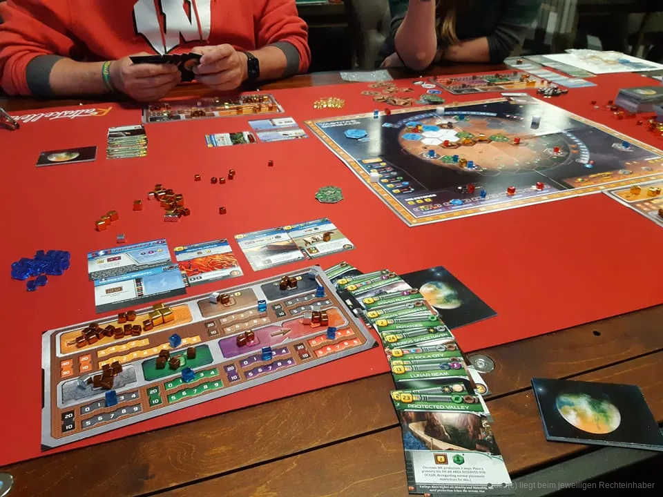 Ist der Mars schließlich warm, grün und nass genug, endet das Spiel. Wer dann die meisten Punkte aus Terraform-Wert und Sonderwertungen gesammelt hat, gewinnt den Wettlauf um den Mars.