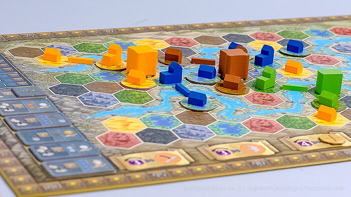 Das Spiel mit dem der Feuerland Verlag berühmt wurde und gleich auch das erste in seinem Repertoire ist Terra Mystica, welches im Jahre 2012 erschien. Mehrere Erweiterungen, Fanmade Stuff und unterschiedliche Big Boxen unterstreichen den Erfolg dieses Games. Der Verlag Steamforged Games wird bald über Gamefound für eine Special Edition von Terra Mystica Geld sammeln. Das Eurogame richtet sich an 2 bis 5 Spieler und hat eine Spieldauer von 60 bis 150 Minuten.