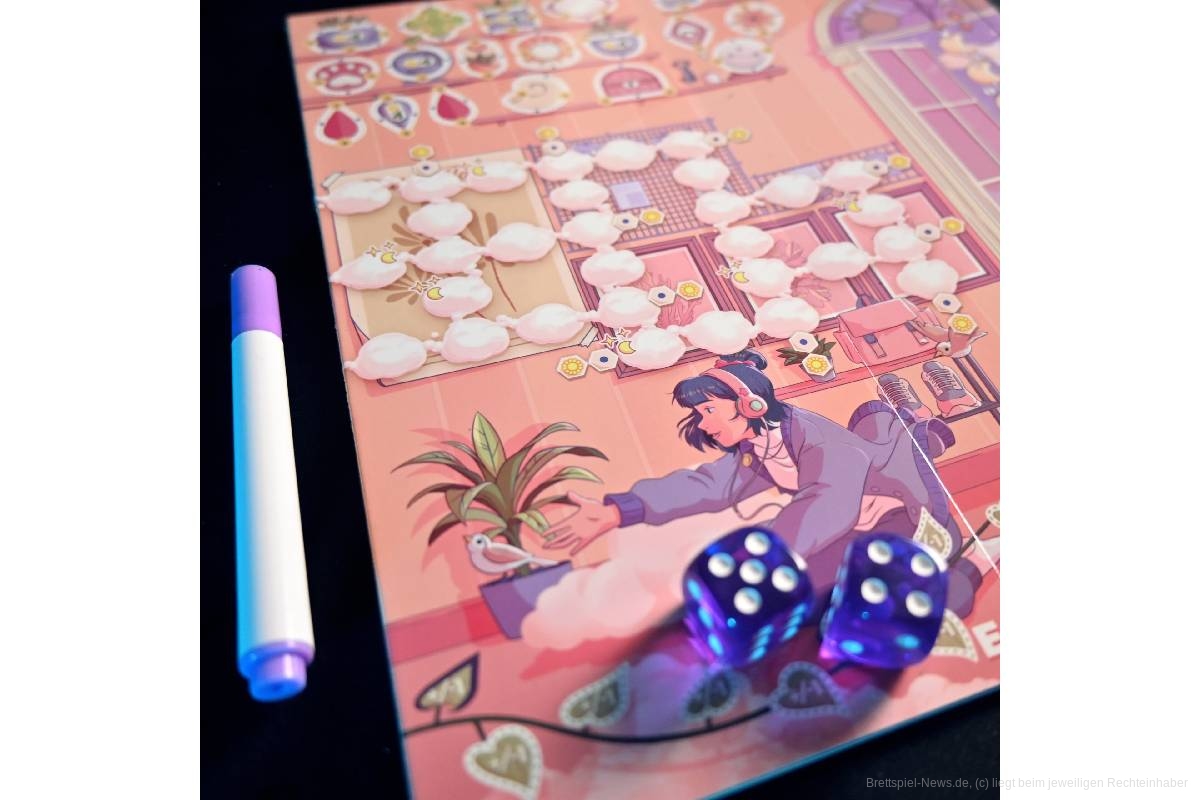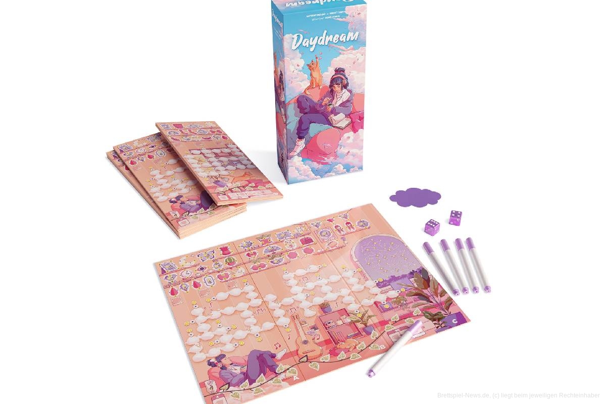 Das Thema von „Daydream“ soll entspannte Atmosphäre mit behaglichem Spielgefühl verbinden. Das wird besonders im pastellfarbenen Artwork von Memé Candia deutlich. Auch die Art des Spiels (Roll & Write auf Familienspiel-Niveau) lässt ein eher solitäres Spielgefühl mit wenig Ärgerfaktor vermuten. Für entspannte Herbsttage zu Hause bietet sich das Spiel allemal an. Mit 15-30 Minuten Spielzeit ist es schnell gespielt.