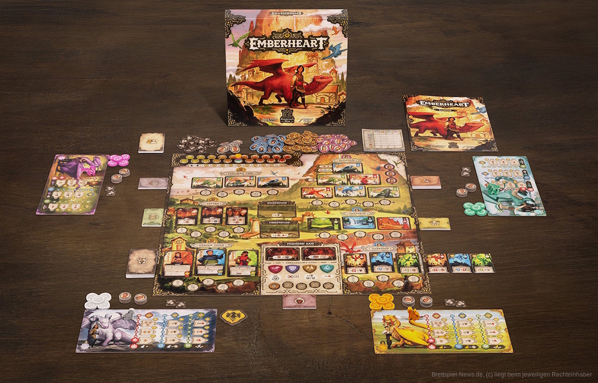 Das Spiel für zwei bis vier Drachenfreunde nutzt einen Biet-Mechanismus, Worker-Placement und Set Collection-Elemente und wird in etwa 60 bis 90 Minuten gespielt. Der Illustrator Andrew Bosley, den man beispielsweise von Everdell, Decent, Love Letter oder Unconscious Mind kennen könnte, hat die Grafik beigesteuert.