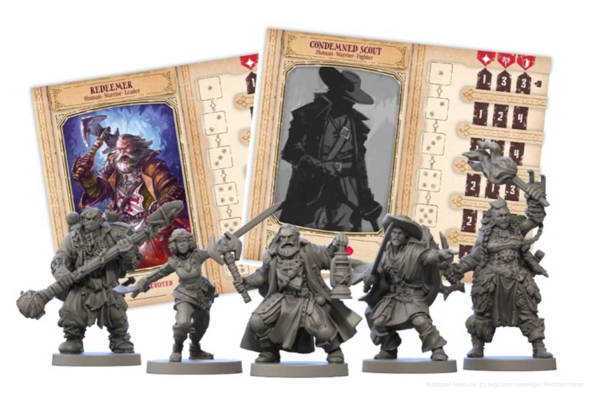 Jede Partie ist ein one-shot-Szenario, von gewagten Fluchten bis hin zum Versiegeln höllischer Portale. Ihr würfelt und weist euren Protagonisten Würfel zu, um Aktionen auszuführen und eure Gegner zu überlisten. Durch die asymmetrischen Spielweisen der beiden Fraktionen, die modularen Spielfeldkacheln und die abwechslungsreichen Szenarien, soll euch eine hohe Wiederspielbarkeit garantiert werden.