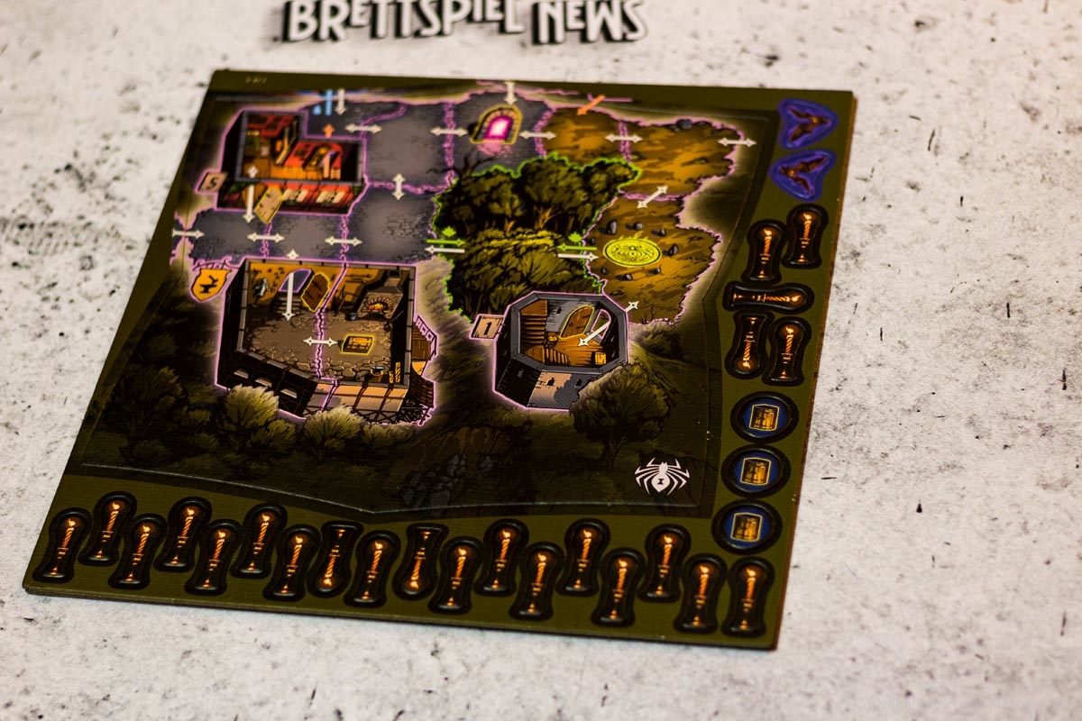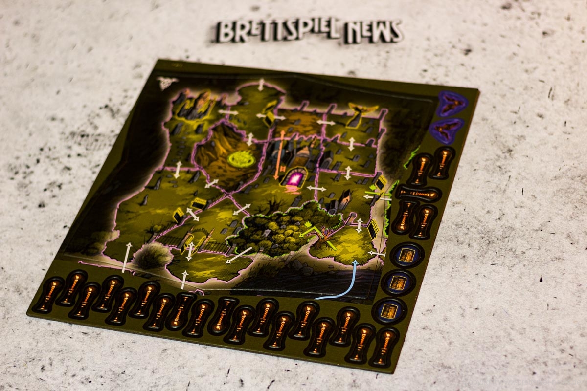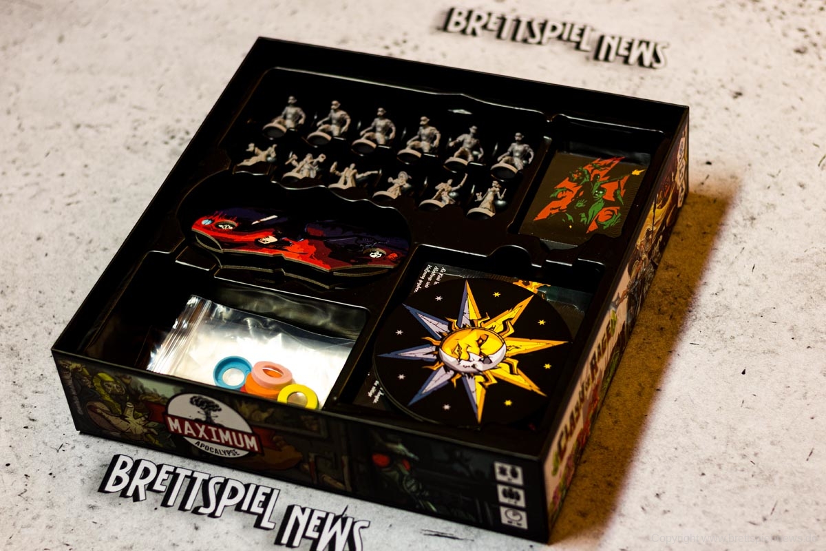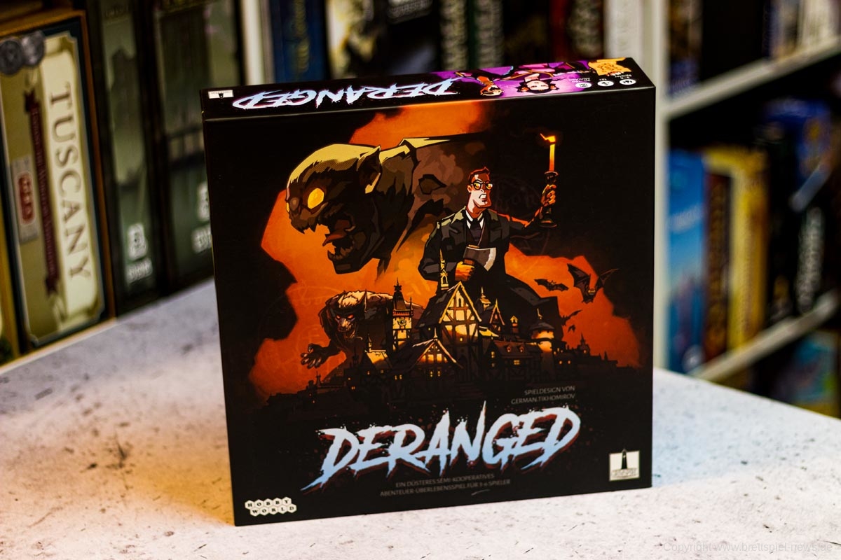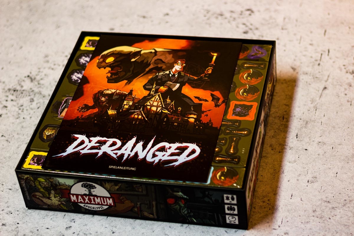 DERANGED ist mittlerweile erschienen. Wir haben ein Exemplar erhalten und zeigen Bilder vom Spielmaterial. DERANGED ist für 3-6 Spieler ausgelegt und wurde vom Verlag Grimspire als deutsche Version realisiert. Das Spielmaterial macht schon einmal einen guten Eindruck und wer düstere Spiele mit Horror-Szenario mag, sollte das semi-kooperative Spiel im Blick behalten.