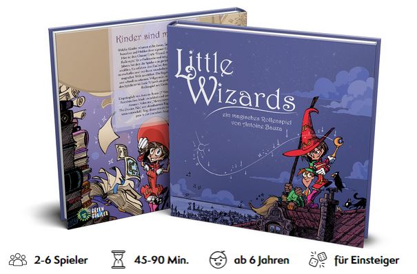 Das Spiel kann in wenigen Minuten erlernt werden. Vollgepackt mit Hilfestellungen für die Spielleiter*in, welche von einem Erwachsenen übernommen werden sollte, ist Little Wizards ein perfekter Einstieg in das Rollenspiel mit Kindern. Es fördert die Kreativität von Kindern und weckt in besonderem Maß ihre kognitiven, sozialen und emotionalen Fähigkeiten.