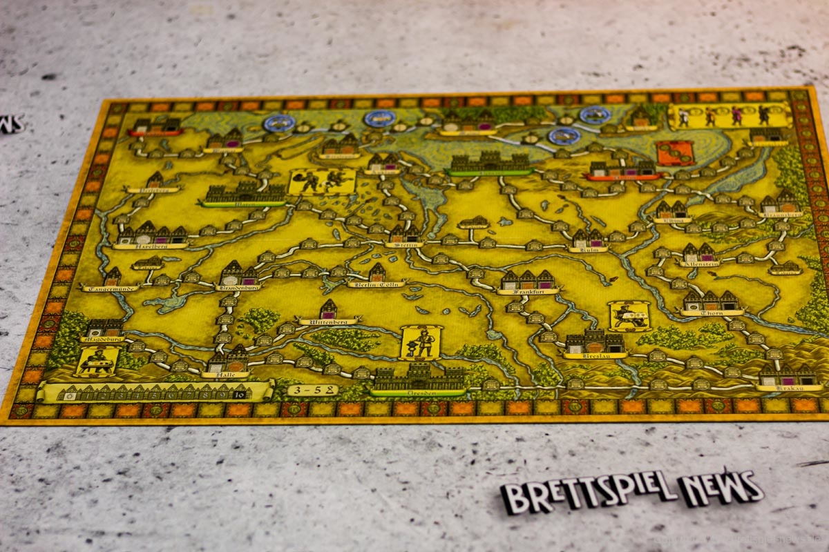Das mehrfach preisgekrönte Strategiespiel HANSA TEUTONICA ist als Big-Box-Edition mittlerweile erschienen. Wir zeigen Bilder vom Spielmaterial, dass sich vor allem durch verschiedene Spielpläne auszeichnet. In HANSA TEUTONICA versuchen die Spieler, ihr Ansehen als Kaufleute in der Hanse zu steigern, indem sie auf verschiedene Weise Prestigepunkte sammeln.