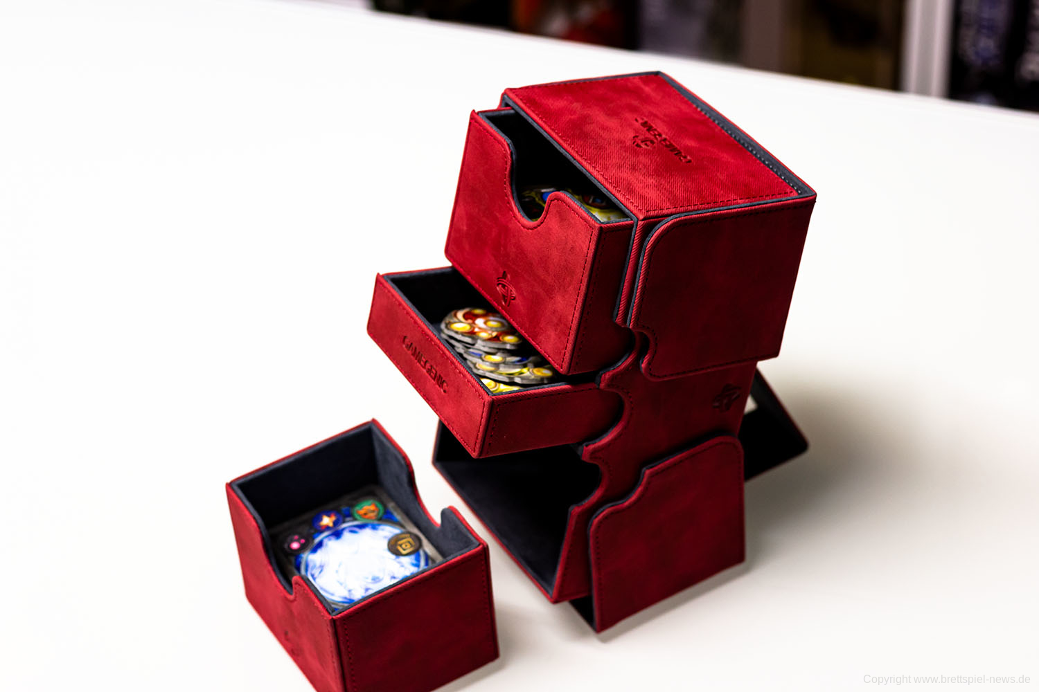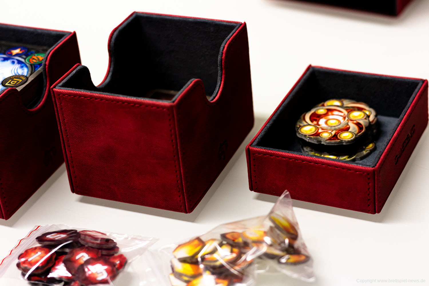 Es wird deutlich, dass auch hier eine sehr spezielle durchdachte Verpackung für Liebhaber von Deckbuilding- / Living Card Games entwickelt wurde. Der Preis liegt bei 33,99 € und gemessen an der Produktqualität wird er das auch wert sein. Die Frage, ob man sich dieses Luxus-Zubehör leisten will, muss jeder für sich beantworten.