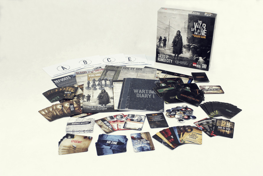 Die Erweiterung TALES FROM THE RUINED CITY für das kooperative Survival-Spiel THIS WAR OF MINE erscheint dieses Jahr bei HEIDELBÄR GAMES auf Deutsch unter dem Titel GESCHICHTEN AUS DEN RUINEN. Die Erweiterung enthält zwei neue Module und fünf Szenarien. Das Neuankömmlinge Modul fügt dem Grundspiel neben neuen Karten und Miniaturen den Markt hinzu. Auf dem Markt können die Spieler:innen handeln oder versuchen die benötigten Waren mit Gewalt an sich zu reißen.