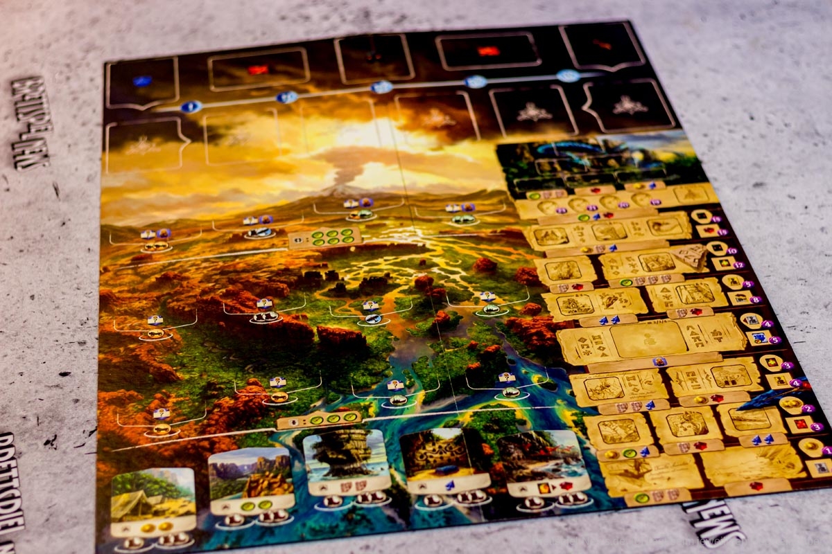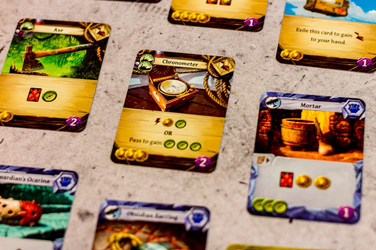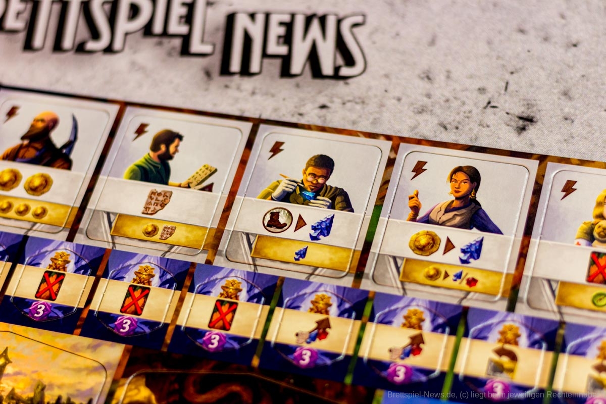 Die Decks sind klein, und der Zufall wird durch die Fülle der taktischen Entscheidungen, die auf dem Spielbrett angeboten werden, stark gemildert. Mit einer Vielzahl von Arbeiteraktionen, Artefakten und Ausrüstungskarten wird der Aufbau für jedes Spiel einzigartig sein und die Spieler dazu ermutigen, neue Strategien zu erforschen, um der Herausforderung gerecht zu werden.