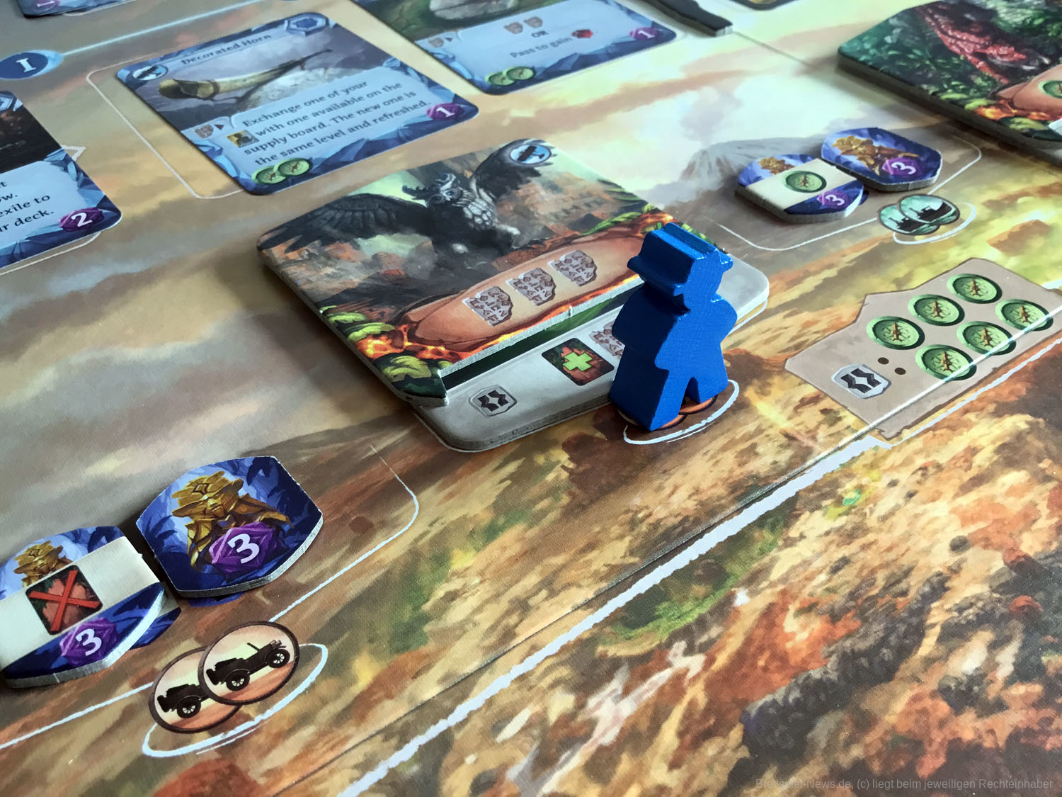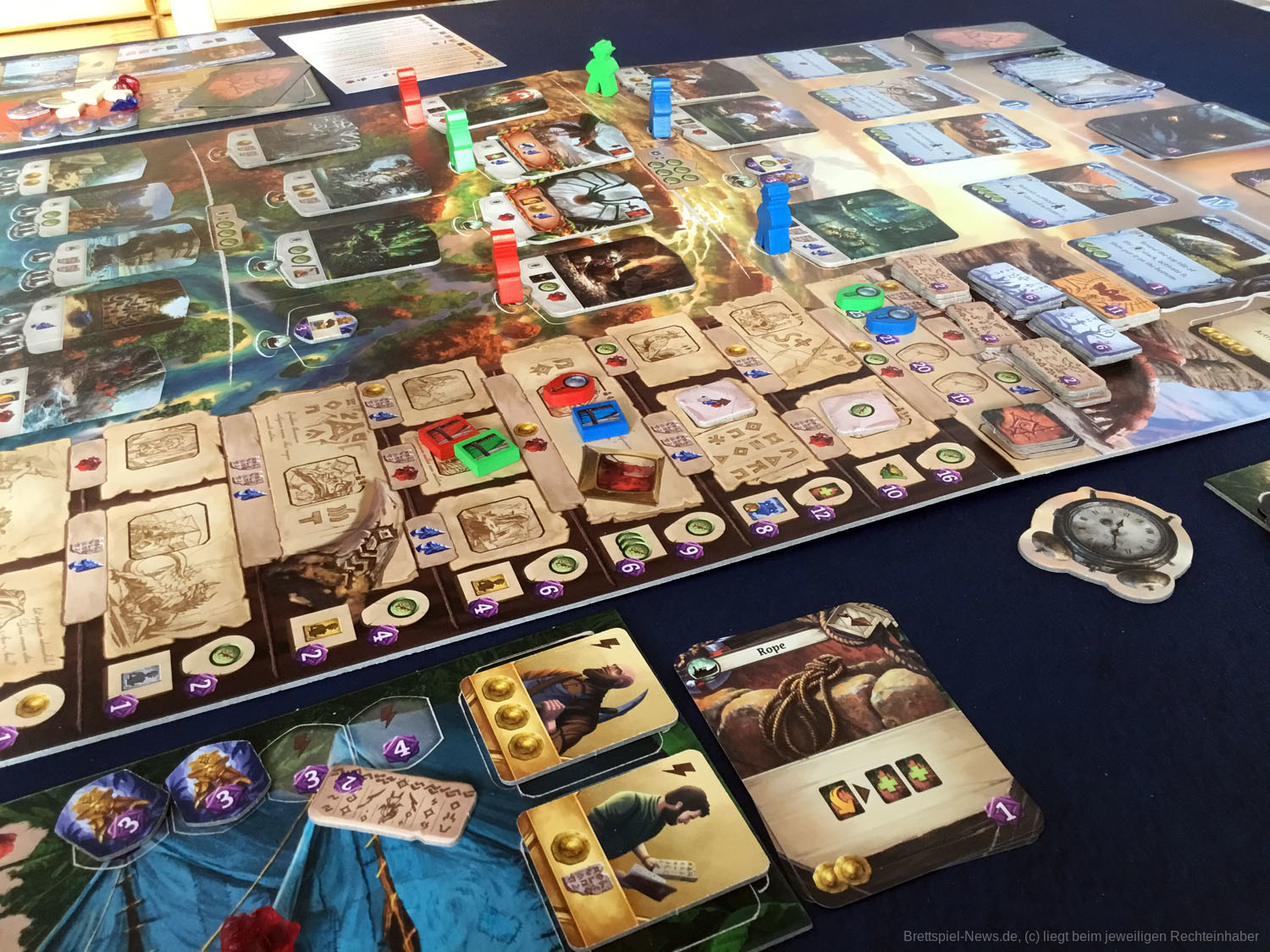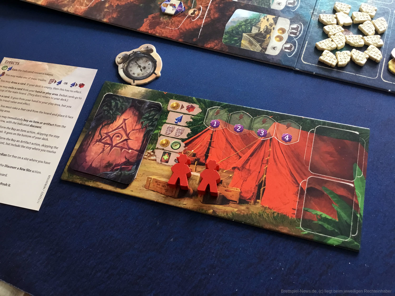 Die Decks sind klein, und der Zufall wird durch die Fülle der taktischen Entscheidungen, die auf dem Spielbrett angeboten werden, stark gemildert. Mit einer Vielzahl von Arbeiteraktionen, Artefakten und Ausrüstungskarten wird der Aufbau für jedes Spiel einzigartig sein und die Spieler dazu ermutigen, neue Strategien zu erforschen, um der Herausforderung gerecht zu werden.